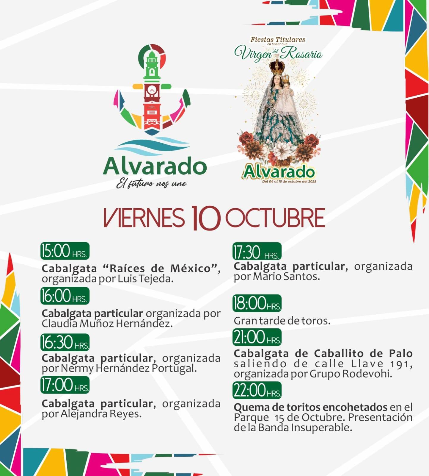 Alvarado, Ver.- Les compartimos el programa completo para que no se pierdan ninguno de los eventos preparados especialmente para ustedes.