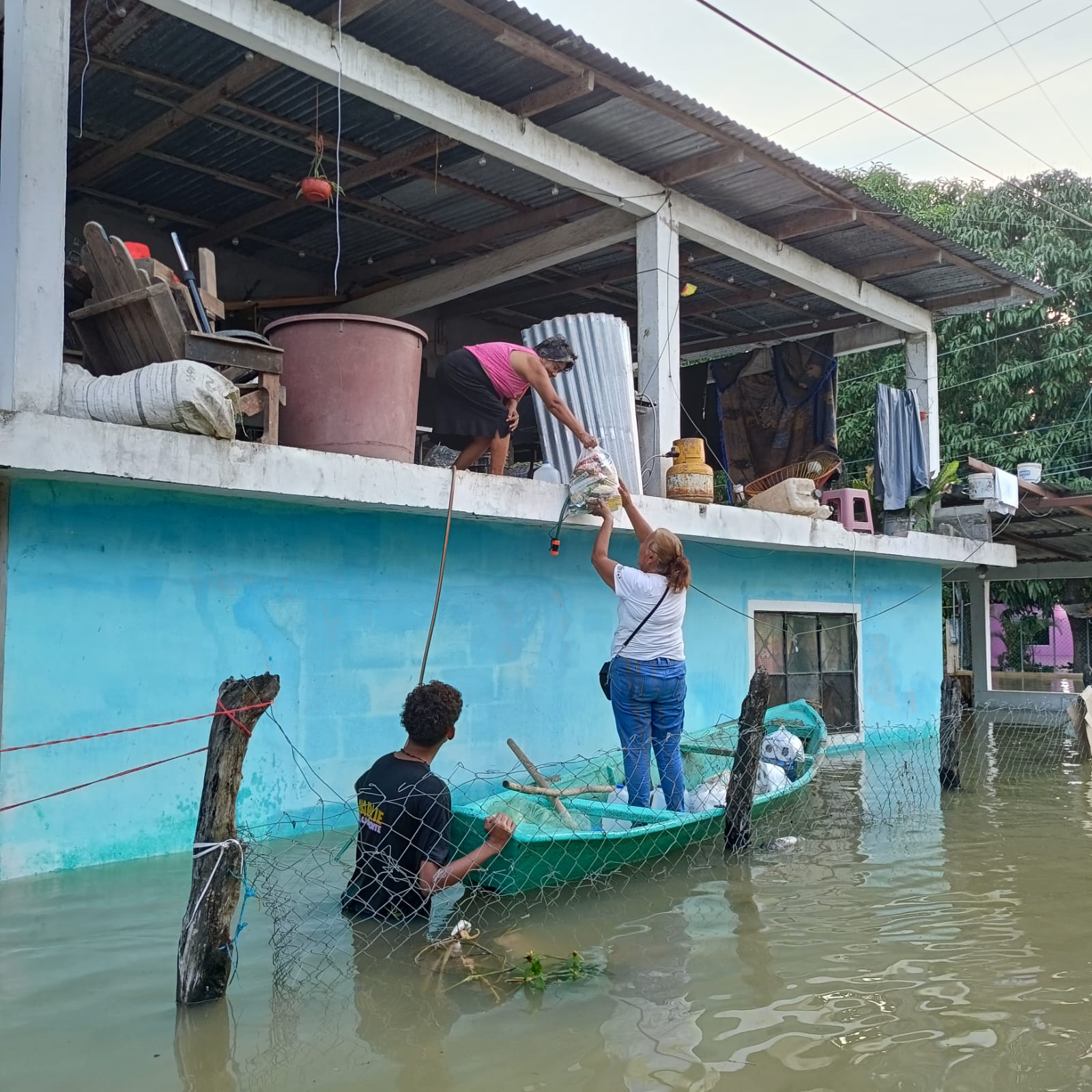 Pánuco, Ver.- Atención para la población de las colonias vulnerables y comunidades incomunicadas por el aumento y desbordamiento del río Pánuco en algunos sectores del municipio, así es como el gobierno del alcalde Óscar Guzmán de Paz viene trabajando en esta contingencia.