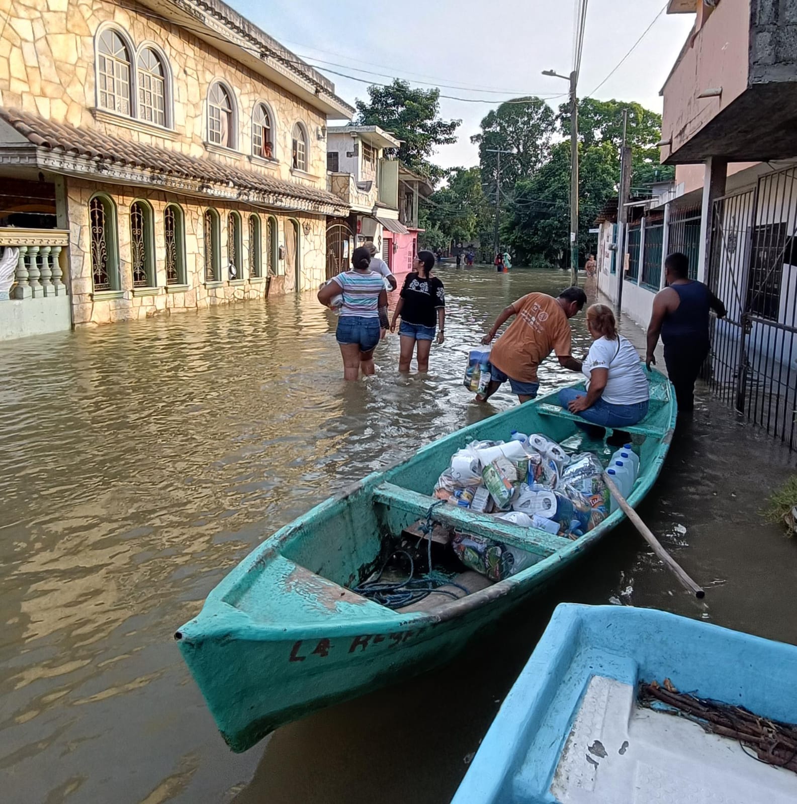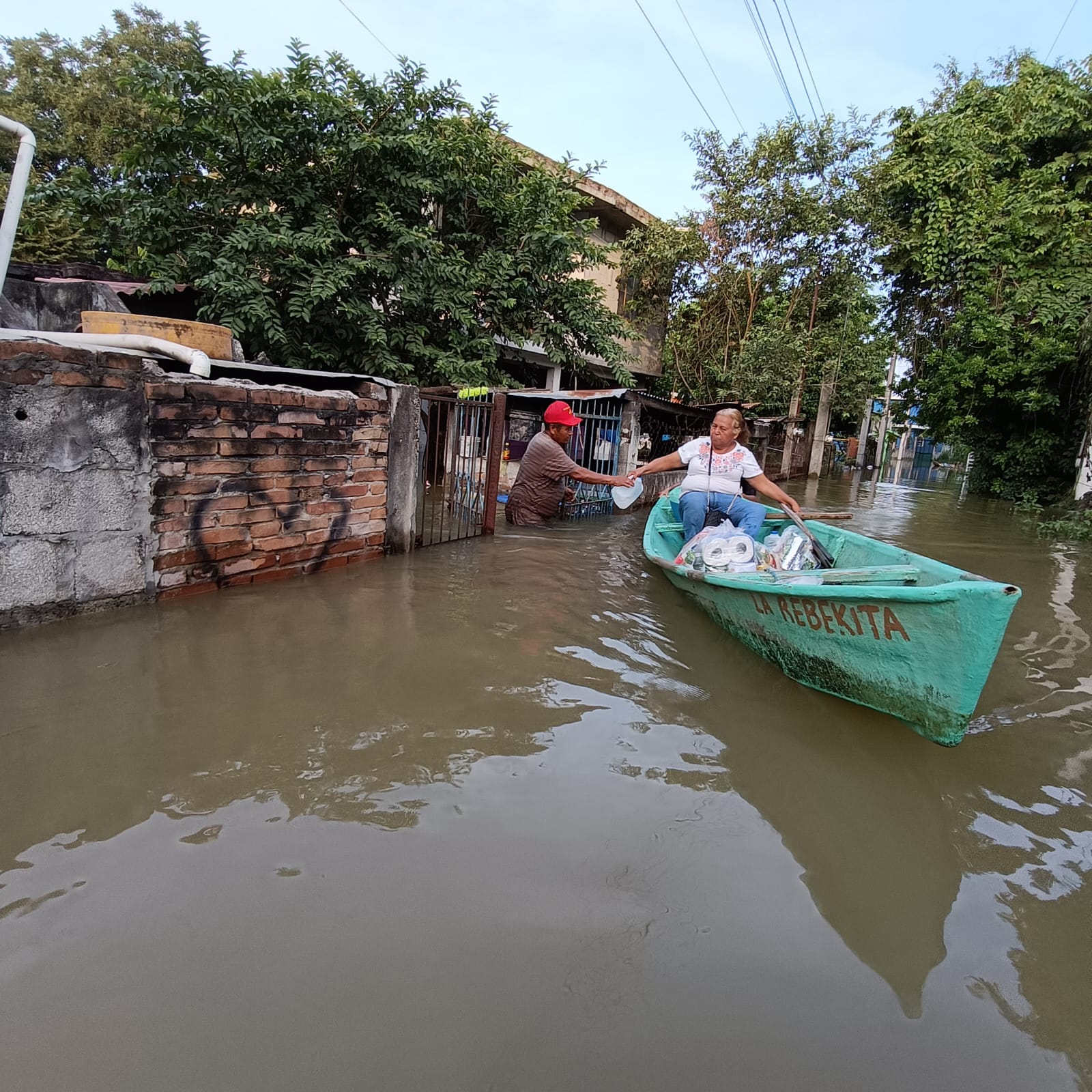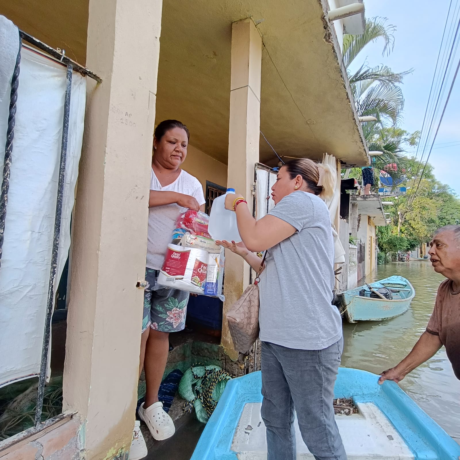 Desde el centro de comando de protección civil municipal y centro de acopio, la dispersión de los apoyos alimentarios, medicamentos y agua fluye a las comunidades y colonias afectadas, vía terrestre, acuática y aérea, desde el sistema DIF municipal las acciones se realizan con el corazón puesto en cada mano que sale a realizar la entrega a las familias.