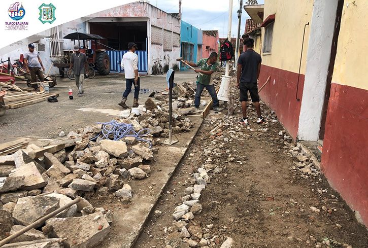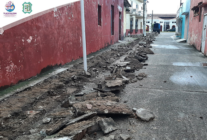 Tlacotalpan, Ver.- El alcalde Christian Romero Pérez en coordinación con la Dirección de Obras Públicas han iniciado la rehabilitación de la banqueta en la calle Manuel Negrete.