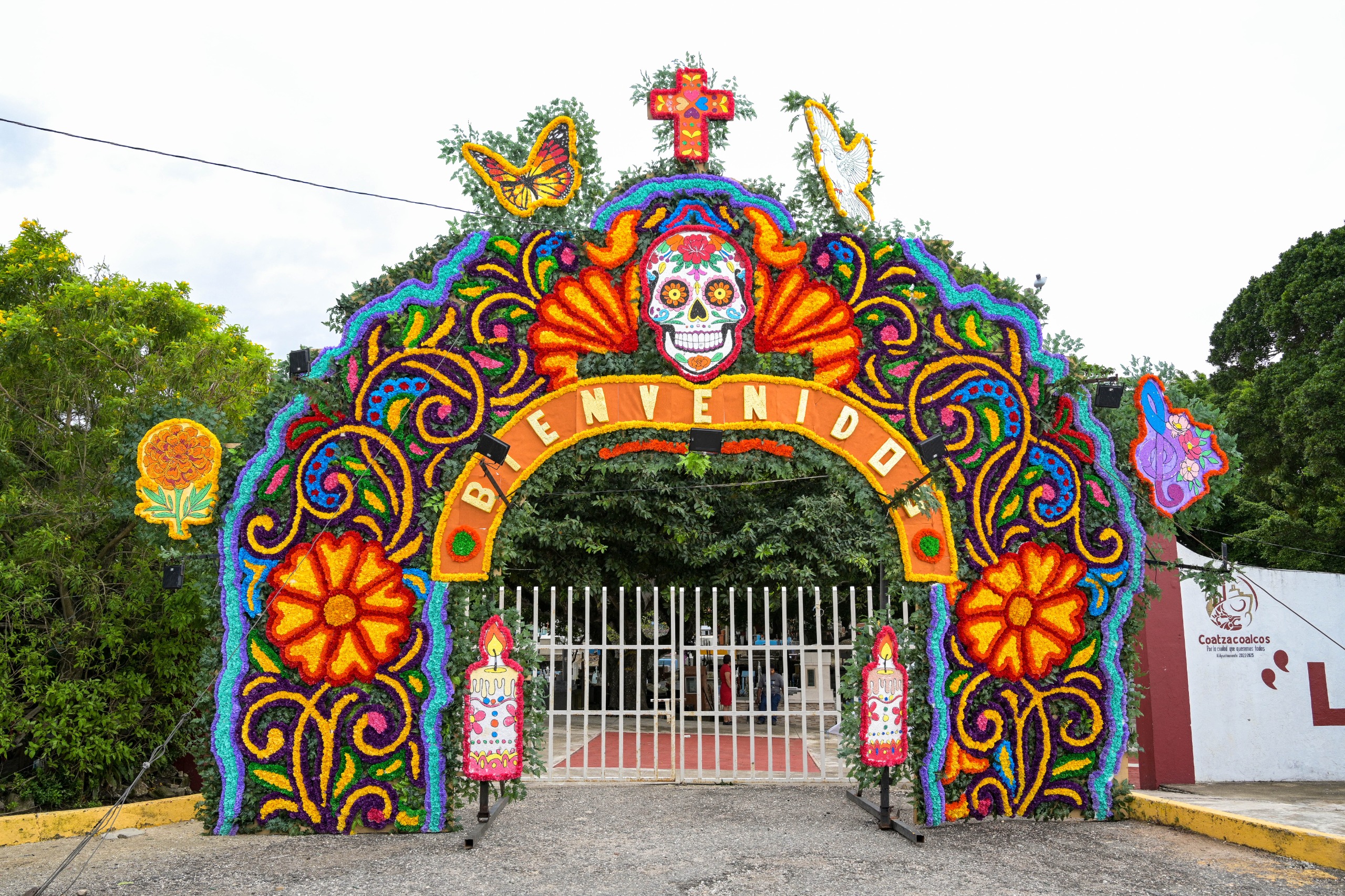 Para hacer más atractivos los cementerios y preservar las tradiciones, se instalaron portadas monumentales en cada uno de los panteones. En estos arcos llenos de colorido y elementos del Día de Muertos, las personas se podrán tomar fotos del recuerdo.