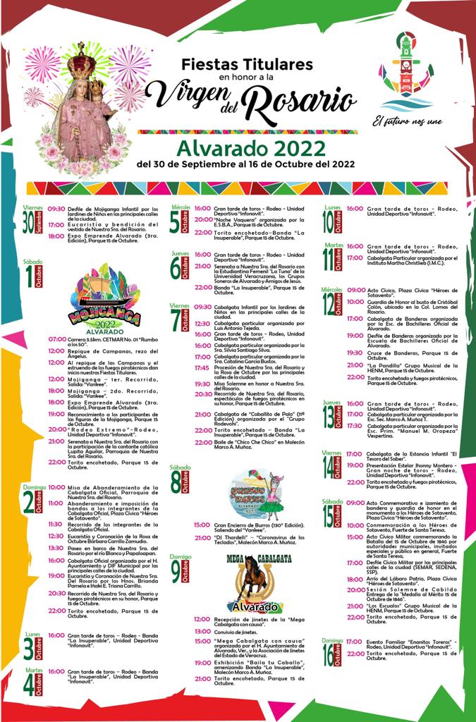Veracruz, Ver.- Del 30 de septiembre al 16 de octubre se llevarán a cabo las fiestas titulares en honor a la Virgen del Rosario en el municipio de Alvarado.
