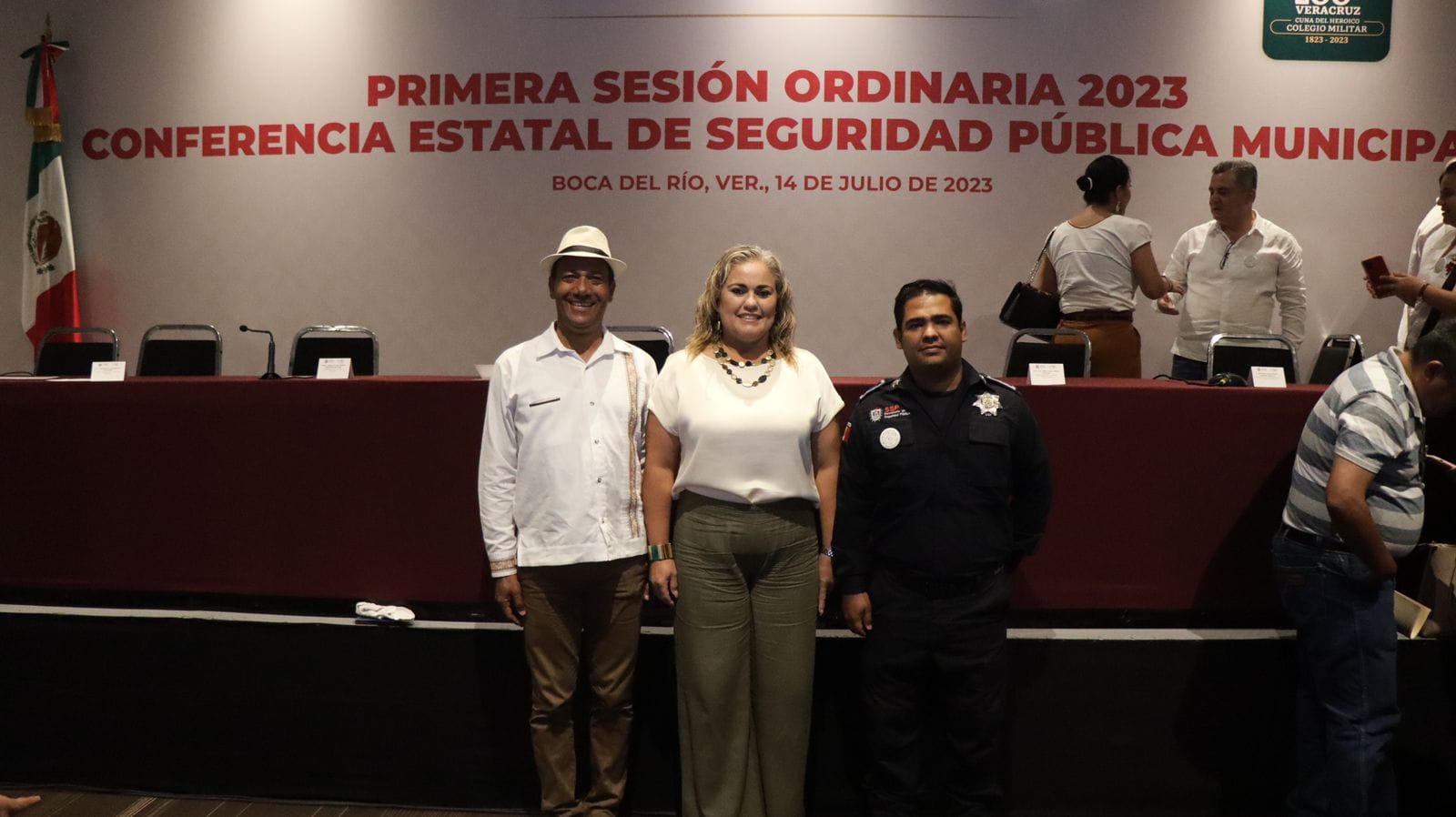 Alvarado, Ver.- La alcaldesa Lizzette Álvarez Vera, acompañada por el regidor Pedro Gamboa Rosas, y por el comandante de la Policía Municipal Acreditable de Alvarado, Luis Arturo Zamudio Cuevas, asistieron a la Primera Sesión Ordinaria Conferencia Estatal de Seguridad Pública Municipal que se llevó a cabo en el World Trade Center.