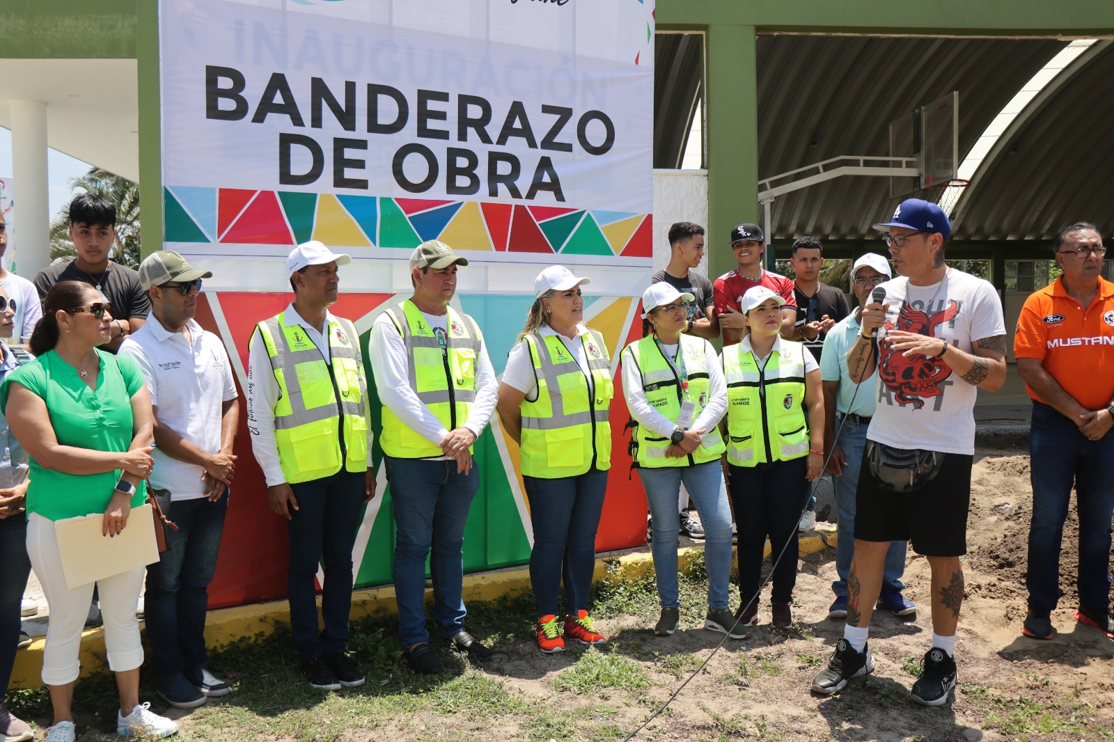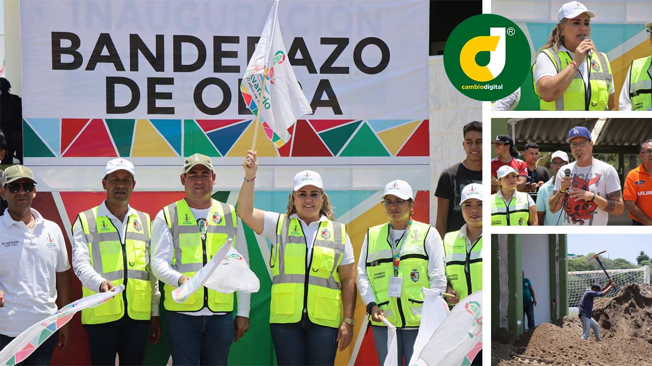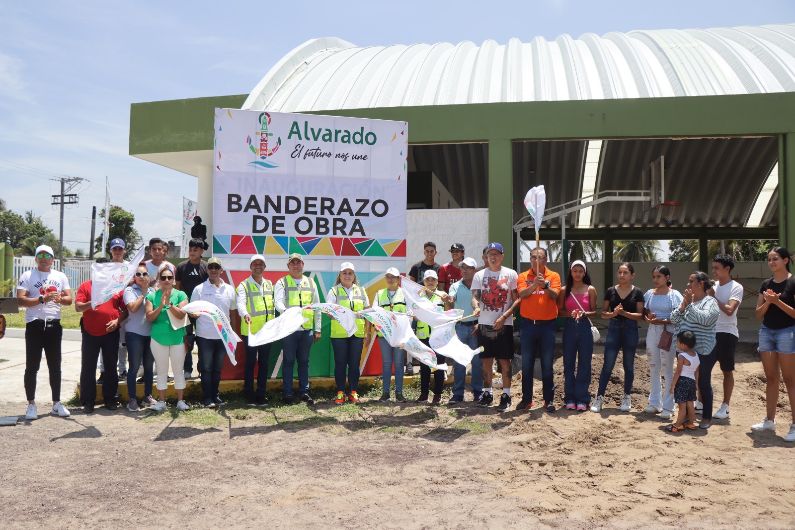 Alvarado, Ver.- Comprometidos con el deporte, las autoridades municipales encabezadas por Lizzette Álvarez Vera, dieron el banderazo de inicio de obra de la Rehabilitación de la Cancha del Multideportivo “Miguel Alemán Valdés” y de la ampliación del techado del Auditorio de Usos Múltiples Atlizintla que incluye la construcción de gradas, sanitarios y acabados.