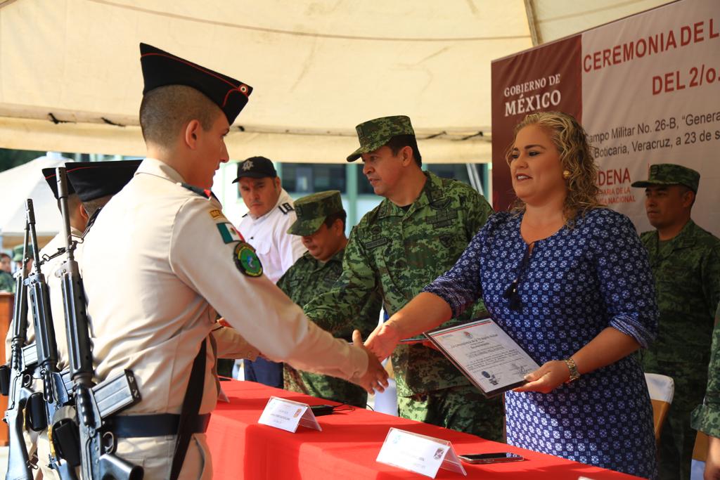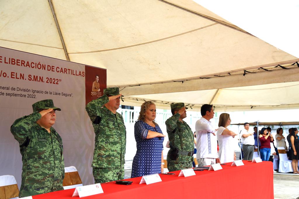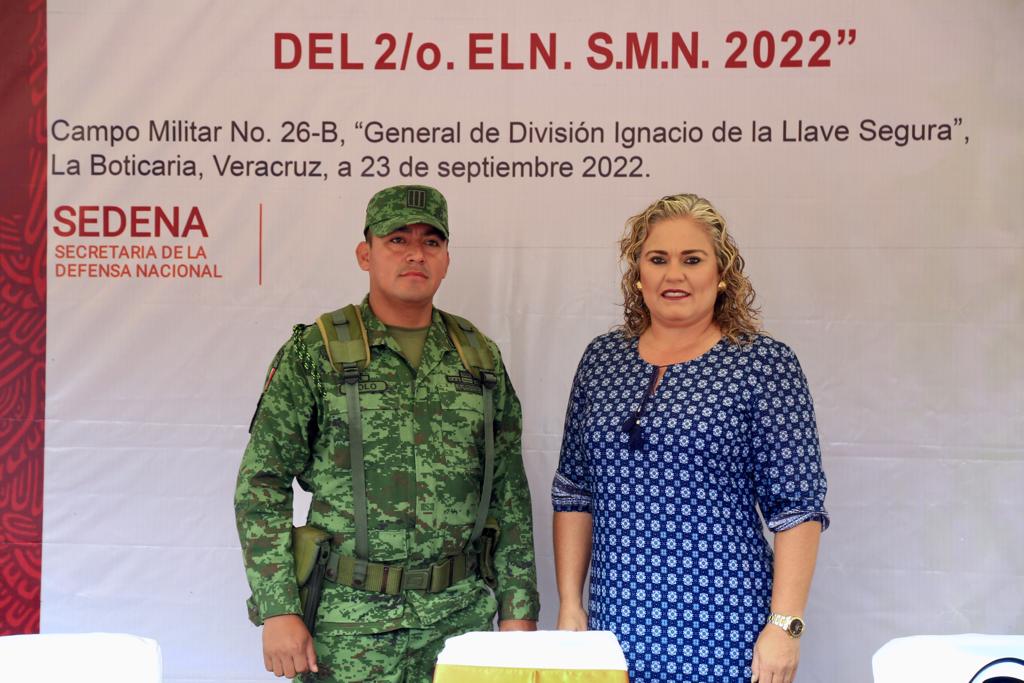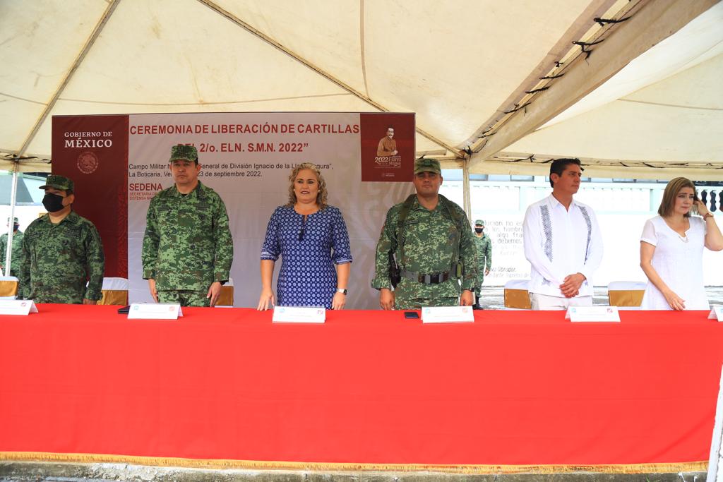Alvarado, Ver.- La presidenta municipal Lizzette Álvarez Vera participó en la ceremonia de Liberación de Cartillas del 2/o. Escalón del Servicio Militar Nacional que se llevó a cabo ayer en La Boticaria, Veracruz.