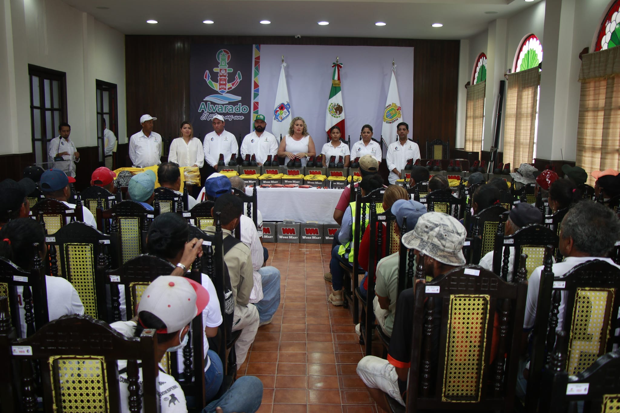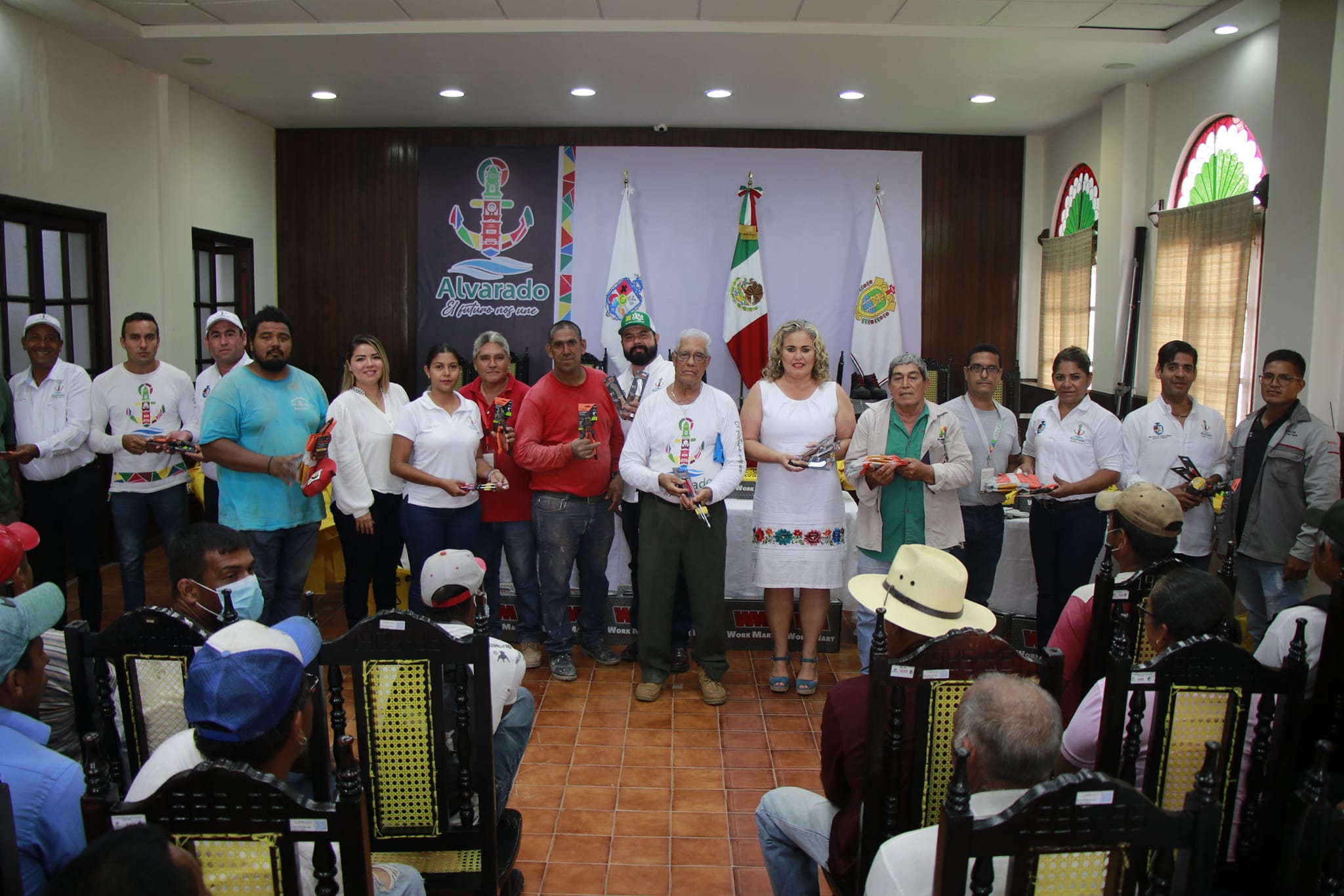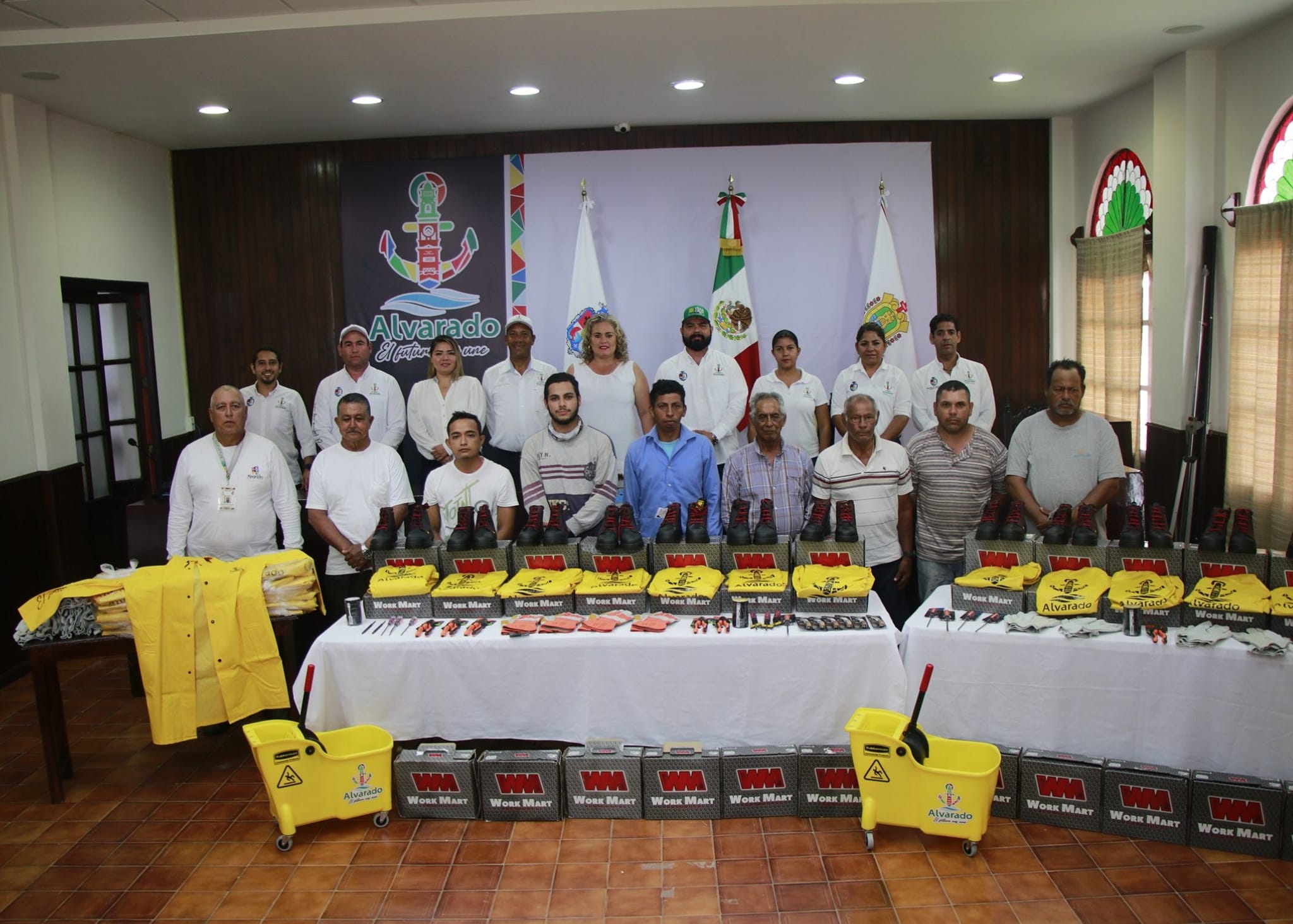 Alvarado, Ver.- Personal de Limpia Pública, Alumbrado Público, Parques y Jardines, recibieron por parte del cuerpo edilicio, uniformes y equipo de trabajo para el desempeño de sus actividades. Con ello el gobierno municipal que encabeza la alcaldesa Lizzette Álvarez Vera contribuye a mejorar las condiciones de los trabajadores.