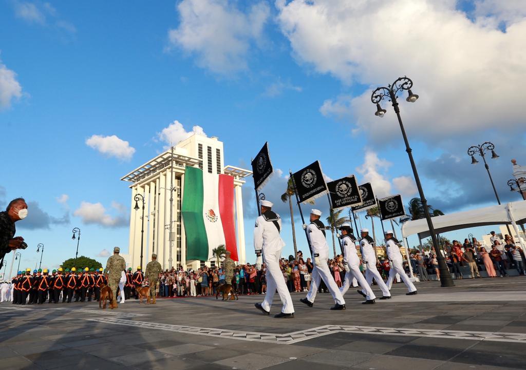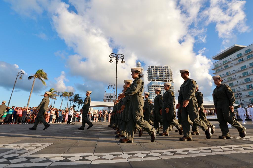 Alvarado, Ver.- “Felicitamos a esta institución militar nacional por su responsabilidad social y su amor por nuestro país, nuestra admiración y respeto”, destacó la alcaldesa de Alvarado, Lizzette Álvarez Vera, en el marco del desfile por el 201 aniversario de la creación de la Armada de México.
