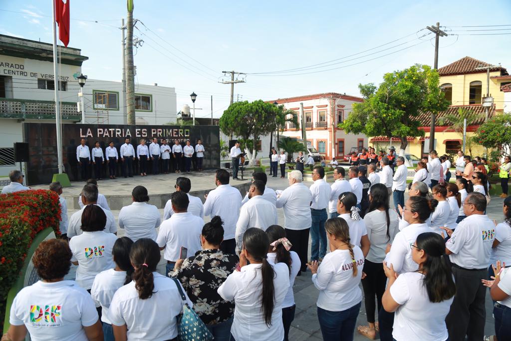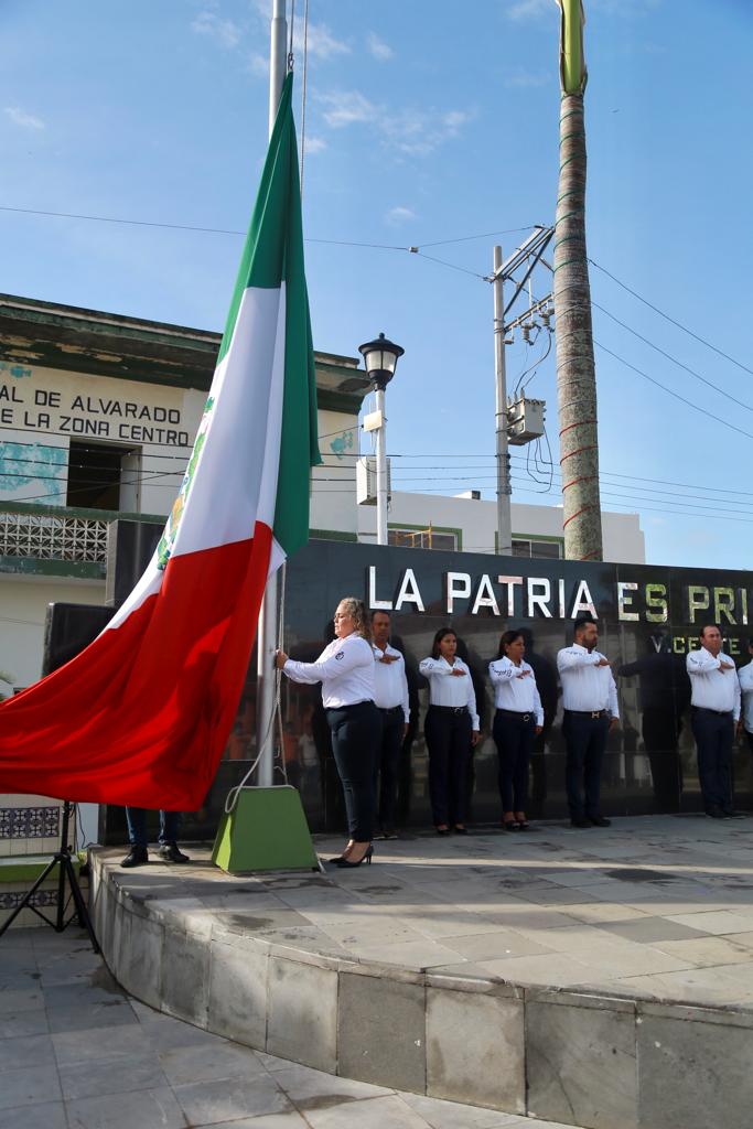 Alvarado, Ver.- En conmemoración de los 530 años de la navegación y exploración del continente americano por Cristóbal Colón y su tripulación, la alcaldesa de Alvarado, Lizzette Álvarez Vera, realizó el acto cívico con la presencia de las autoridades municipales y representantes de los Caballeros de Colón.