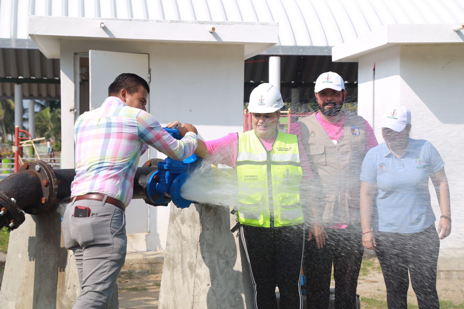 Veracruz, Ver.- La alcaldesa de Alvarado, Lizzette Álvarez Vera, el síndico Jaime Abel Tiburcio Herrera, la regidora Karina Lira Hernández y el jefe de la oficina de CAEV Alvarado, el Ing. Hugo Chantres Castillo, supervisaron el pozo número tres ubicado en el parque deportivo Miguel Alemán, actualmente se encuentra en fase de prueba, al finalizar ésta, el 70% de la población de la cabecera municipal se beneficiará con el vital líquido.