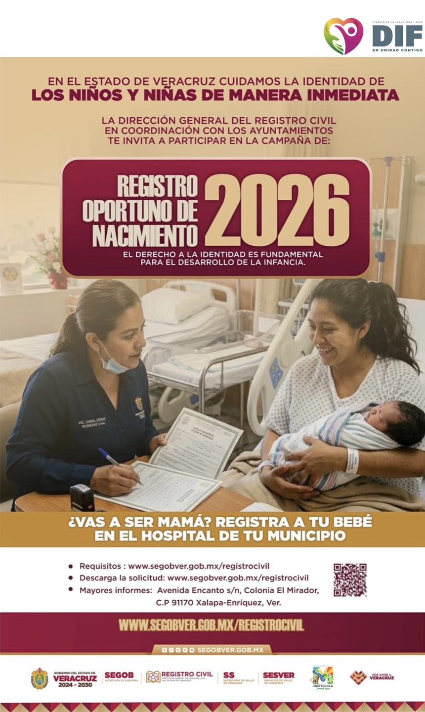 Ignacio de la Llave, Ver.- El Ayuntamiento de Ignacio de la Llave que preside Malú Santiago Ponce, hace un llamado a la ciudadanía para registrar oportunamente a sus bebés, destacando que el derecho a la identidad es fundamental para el desarrollo integral de la infancia.