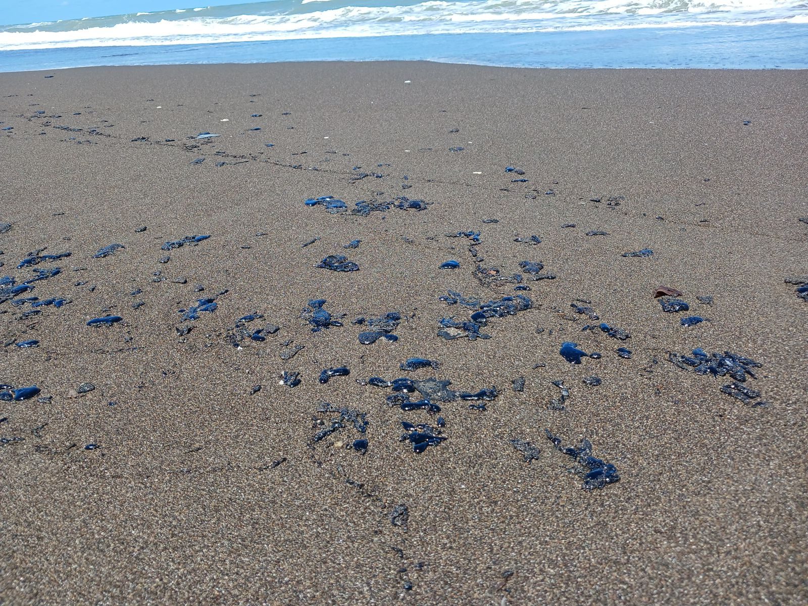 Veracruz.- Este sábado llegaron a playas de Costa Esmeralda residuos de combustible.