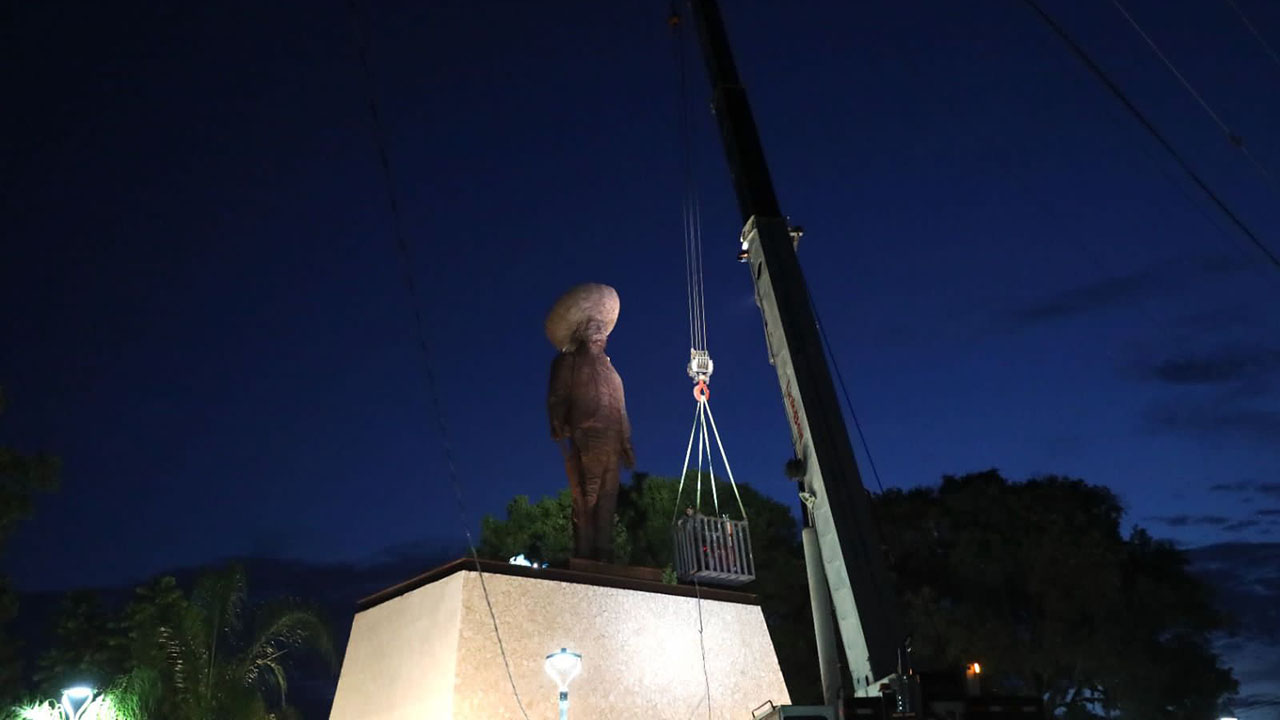 La escultura será develada oficialmente el próximo martes, en el marco del natalicio del Caudillo del Sur.