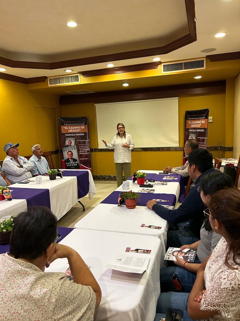 San Andrés Tuxtla, Ver.- Hoy llegó el libro “El Camino de México” de Marcelo Ebrard Casaubón a San Andrés Tuxtla, Veracruz, presentado y comentado por Andrea Genoveva Solano Rendón ante representantes de comunidades de la montaña y costa del municipio, estudiantes y profesionistas.