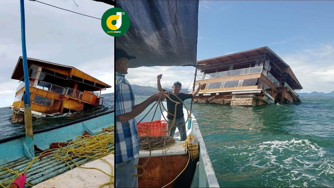 Pescadores vieron flotando a 8 millas náuticas de la costa, uno de los dos módulos que conformaba el restaurante, tomaron un video cuando se acercan.