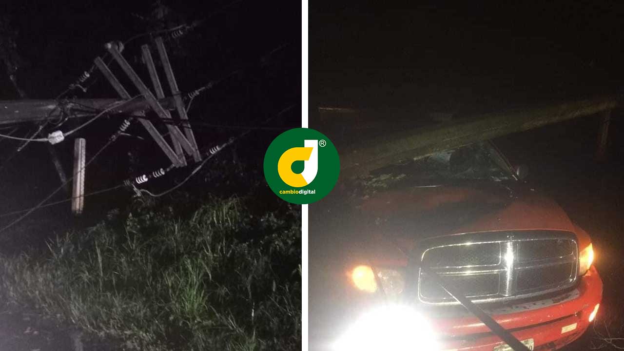 En Amatlán de los Reyes, sobre la carretera estatal hacia Cuichapa, fue cerrada a la circulación vehicular durante varias horas este martes, debido a la caída de un poste de alta tensión sobre una camioneta.