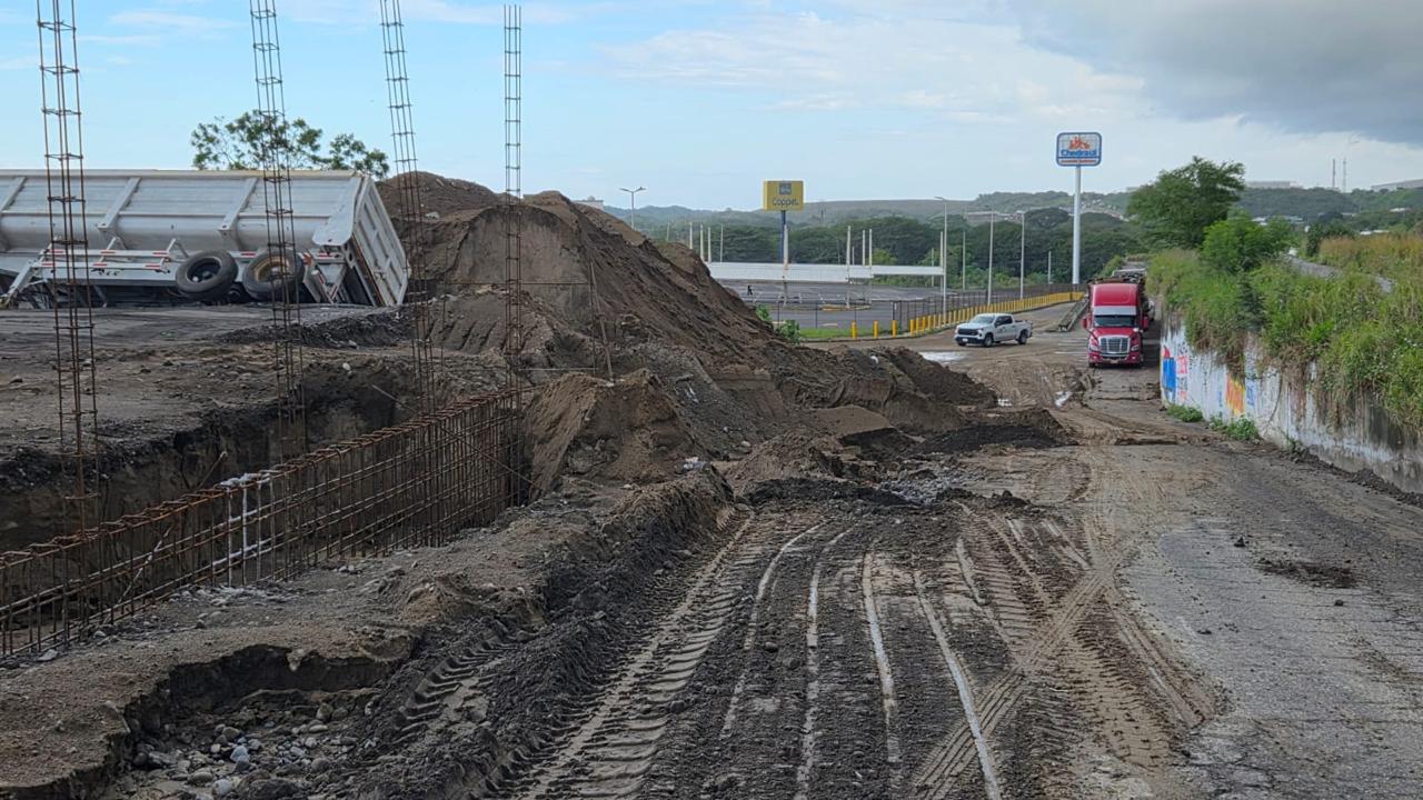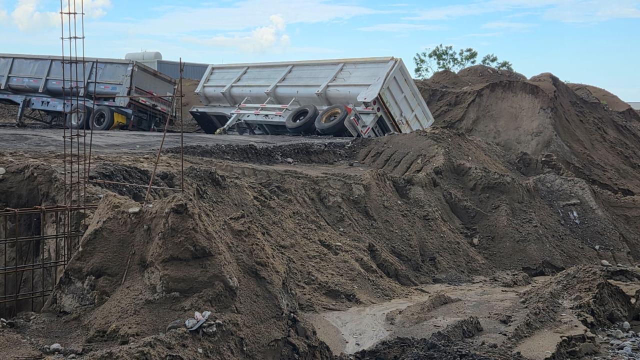 En la ciudad de Veracruz un derrumbe y socavón se tragó dos tolvas de la empresa constructora que trabaja en la repavimentación del libramiento vial portuario Kilómetro 13.5, en la zona norte del puerto.
