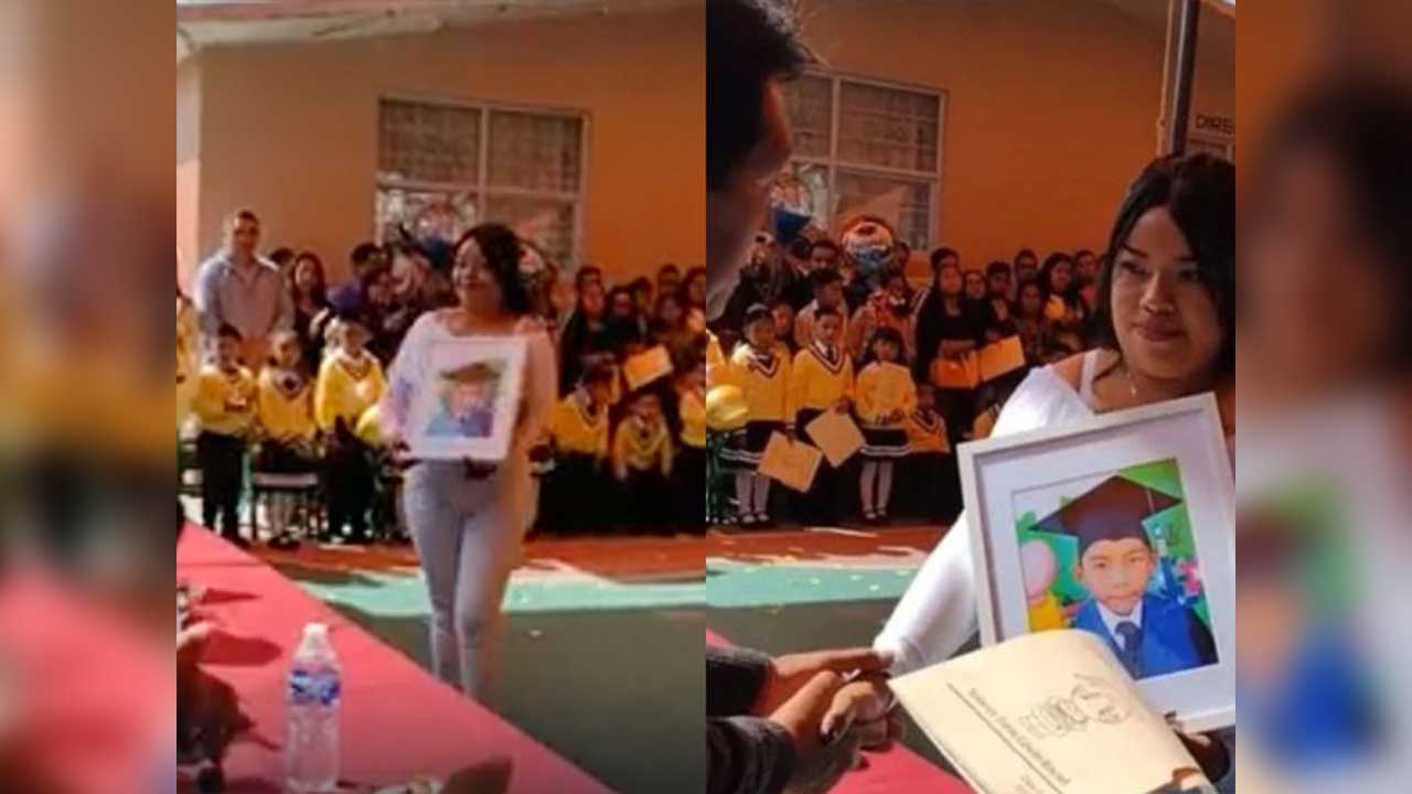 ‘Lo lograste campeón’, madre acude a la graduación de kínder con foto de su hijo fallecido 🎥