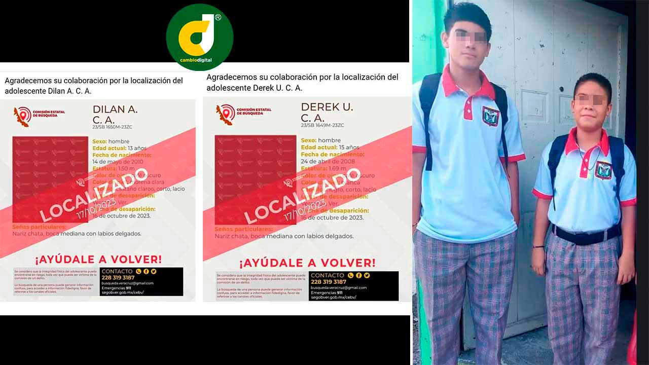 Los menores de 13 y 15 años habían sido reportados desparecidos el pasado lunes, luego de que no regresaran a su casa al salir de la Escuela Secundaria Técnica Federal número 8 “Ricardo Flores Magón”, ubicada en el fraccionamiento Lomas 3, al norte de la ciudad de Veracruz.