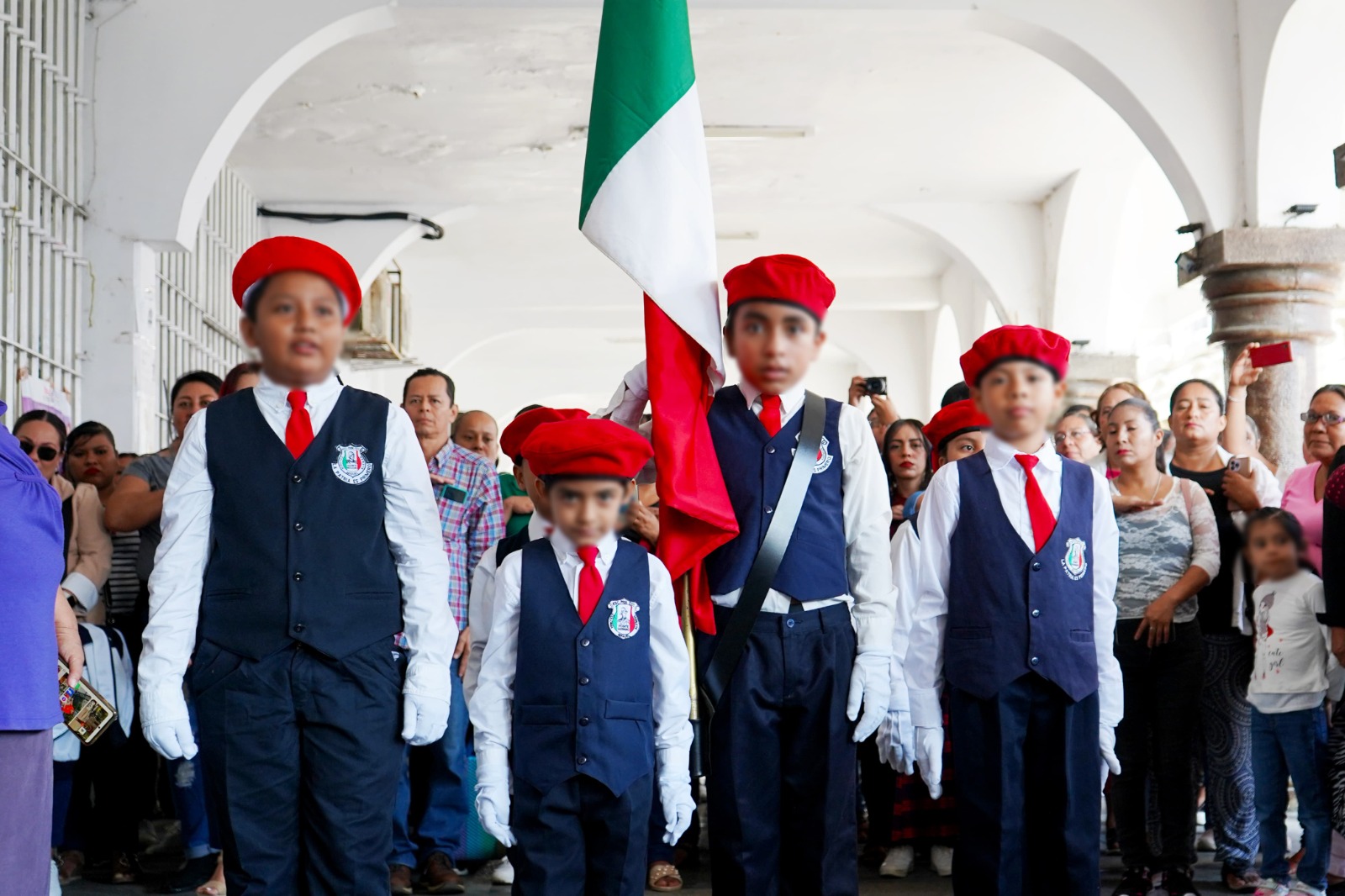 La estudiante Ana Xiomara dirigió el Juramento a la Bandera, mismo que fue interpretado en Lengua de Señas Mexicanas por las maestras Isabel Torres, Josefina Álvaro y Merari Hernández.