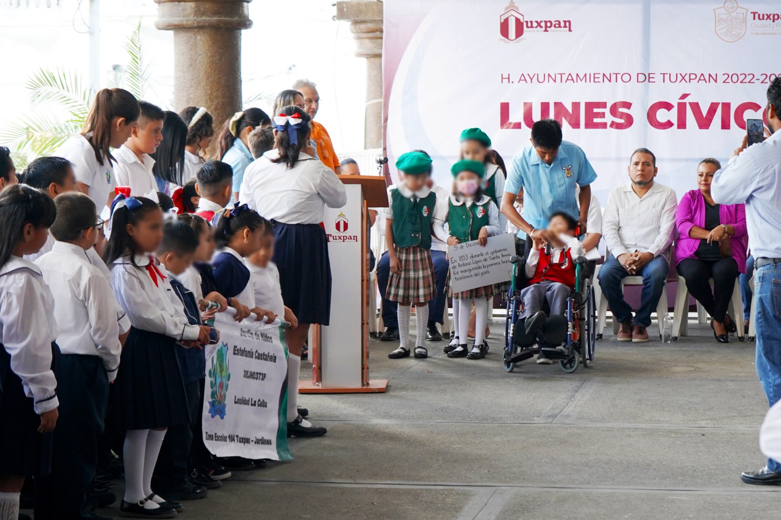 Encabezaron el acto el director de Educación, Prof. Jorge Arturo García Robles, en representación del alcalde Jesús Fomperoza Torres; el regidor comisionado en el área, Prof. Luis Demetrio López Marín; la regidora Maryanela Monrroy Flores; el Lic. Gerardo Rodríguez García, de la Delegación Regional de la SEV en Tuxpan; la L.E.E. Bella Elmira Pulido Solís, directora de la USAER 03.