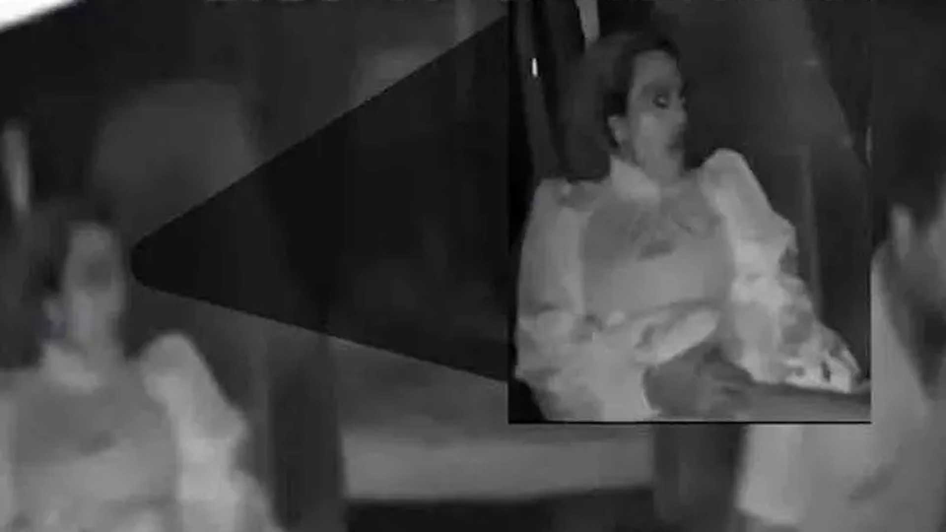 En las imágenes se observa a una mujer vestida de blanco y con una expresión terrorífica sentada en el asiento del copiloto y que parece observarlo sin que el se percate de la situación