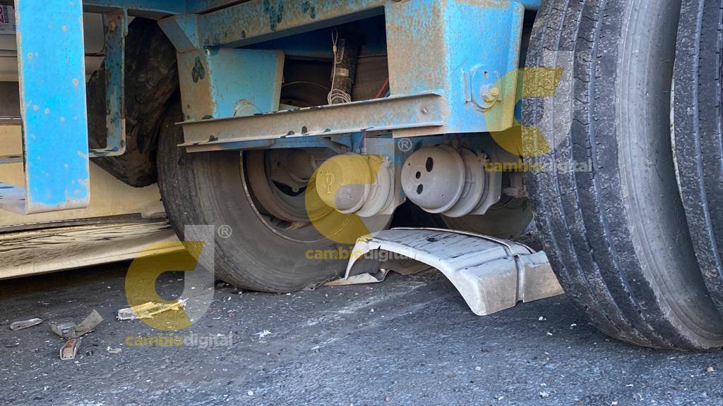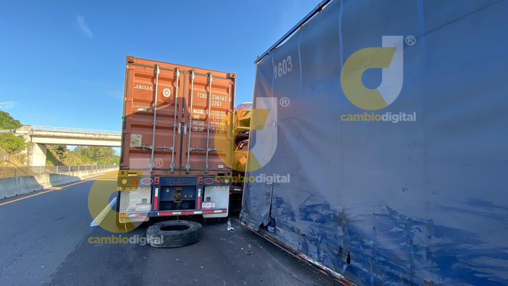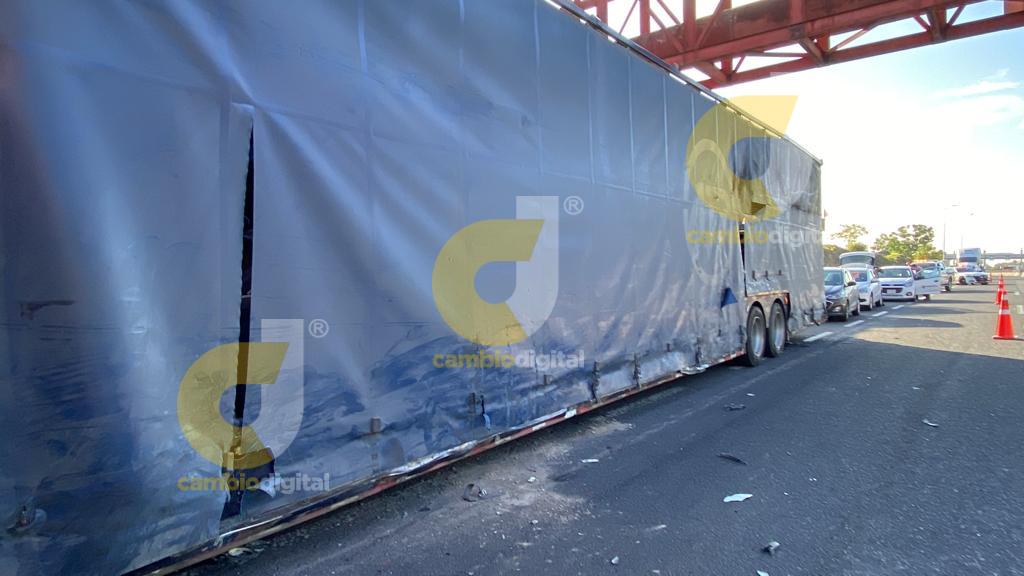 No se reportan personas lesionadas, pero si daños materiales millonarios por las afectaciones a los dos tractocamiones y algunos vehículos nuevos que eran transportados en la madrina.