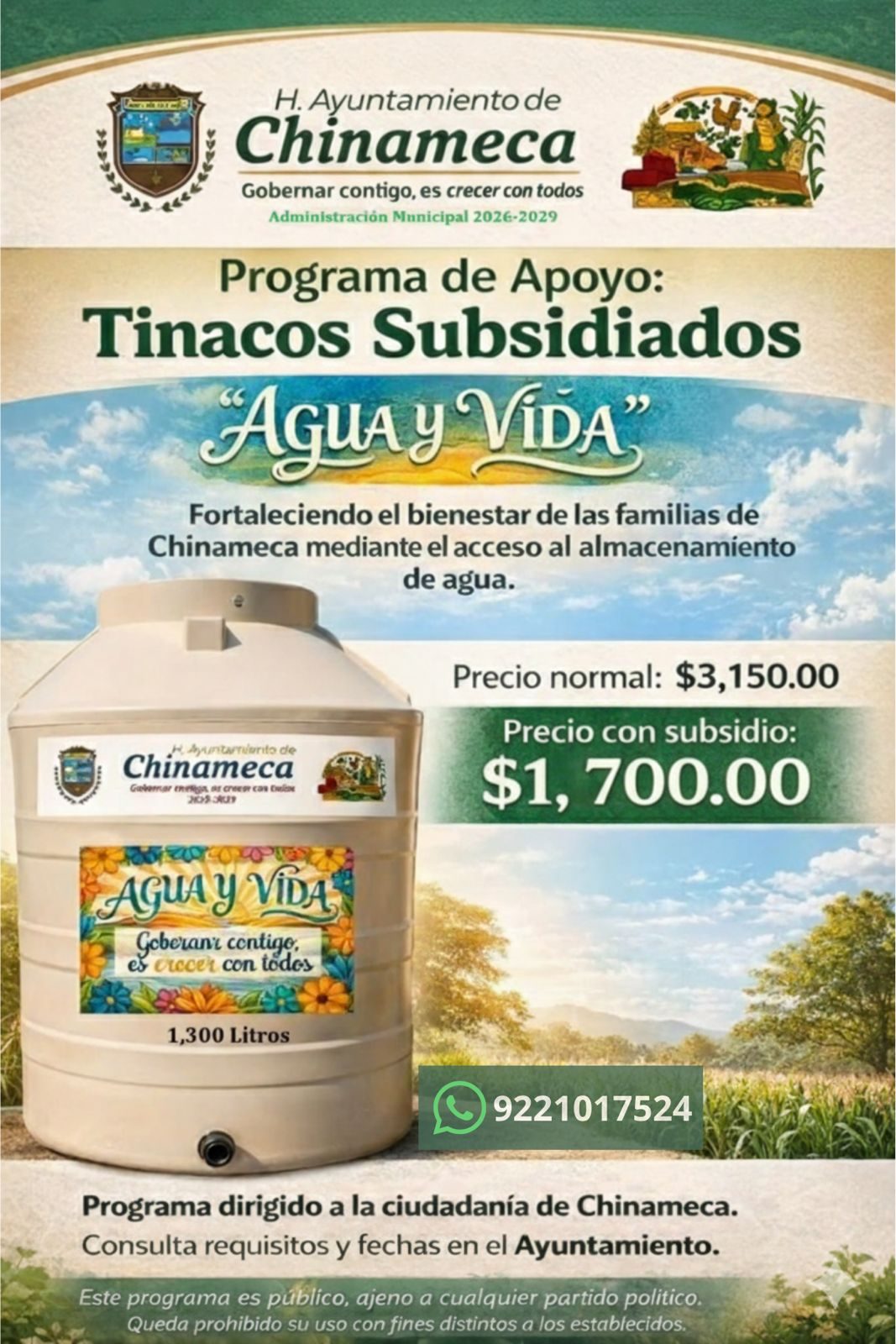 Mantienen en Chinameca programa de apoyos de tinacos subsidiados