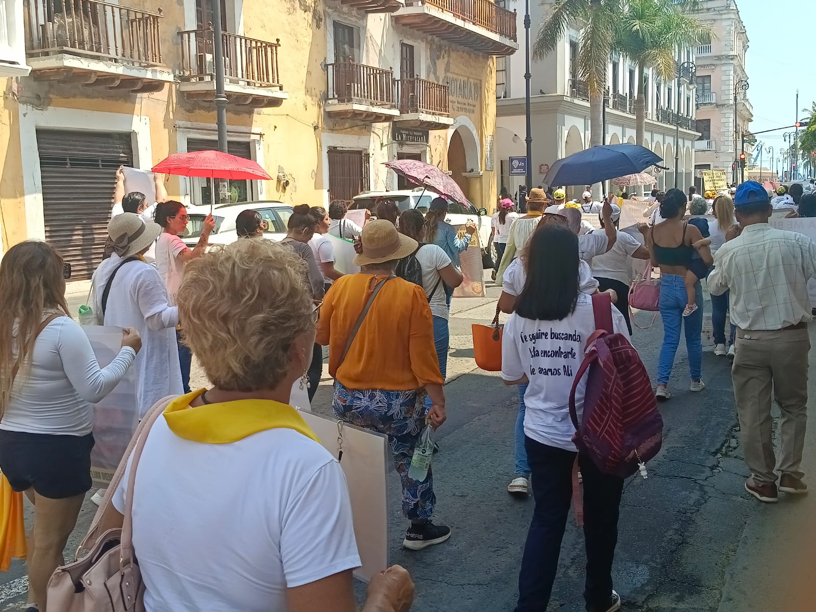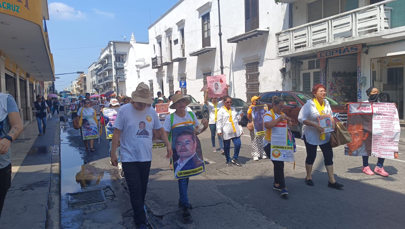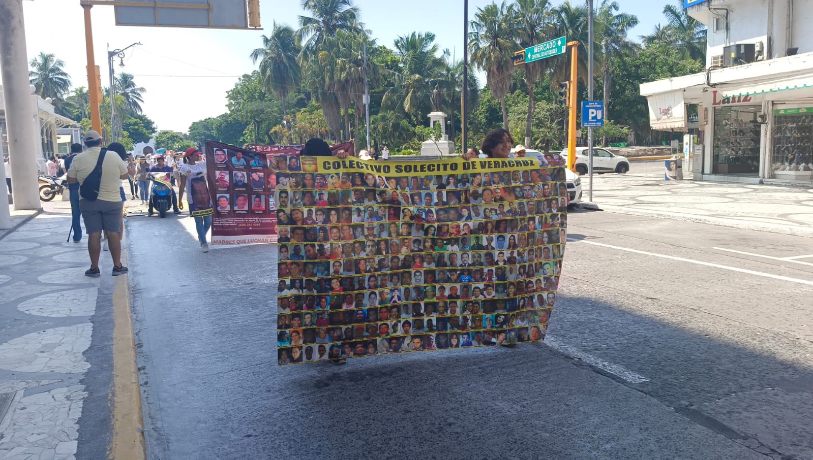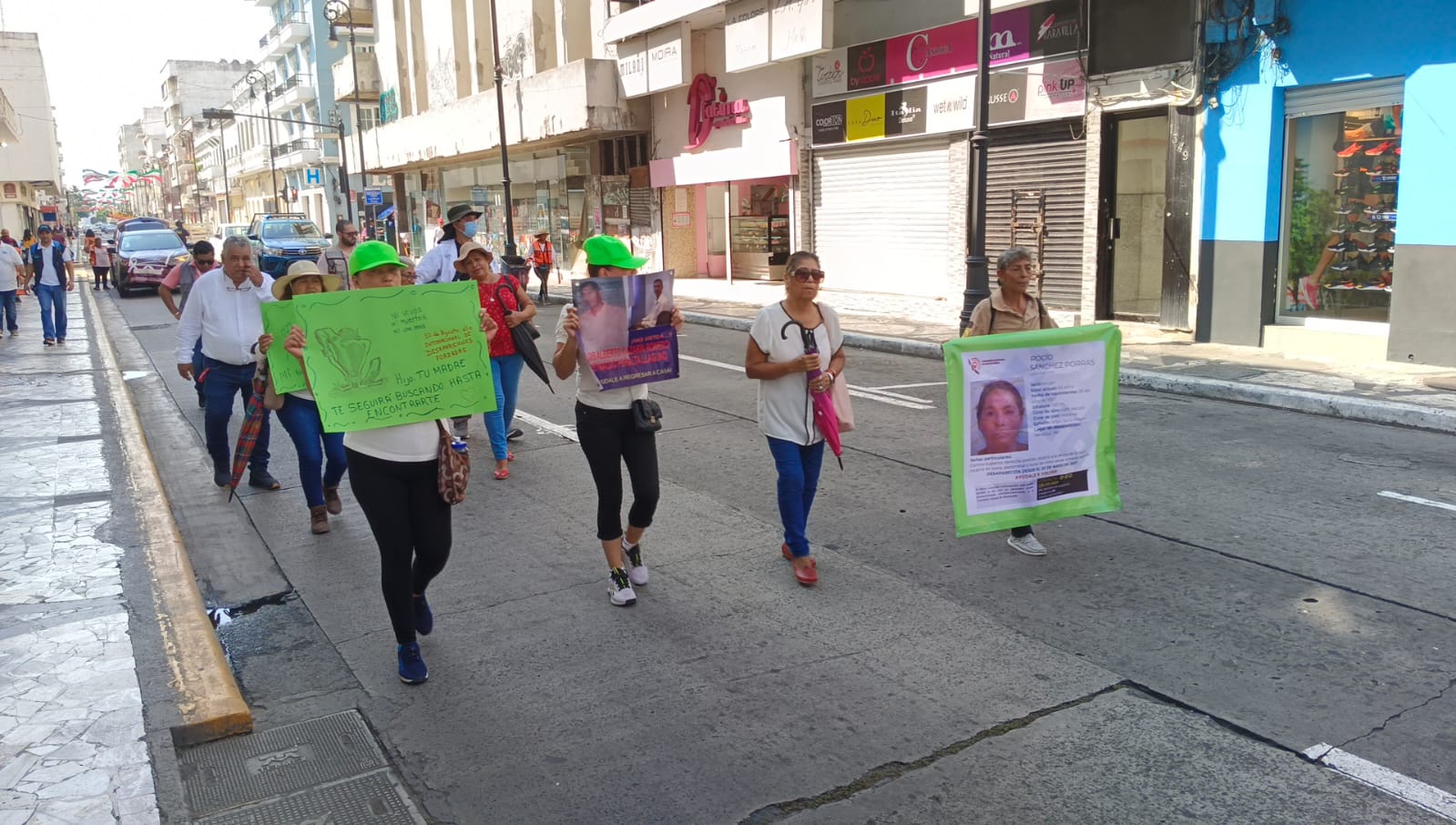 Veracruz, Ver.- Integrantes de Colectivos de Búsqueda de Personas Desaparecidas marcharon por calles del Centro Histórico de Veracruz en el marco del Día Internacional de las Víctimas de Desapariciones Forzadas.
