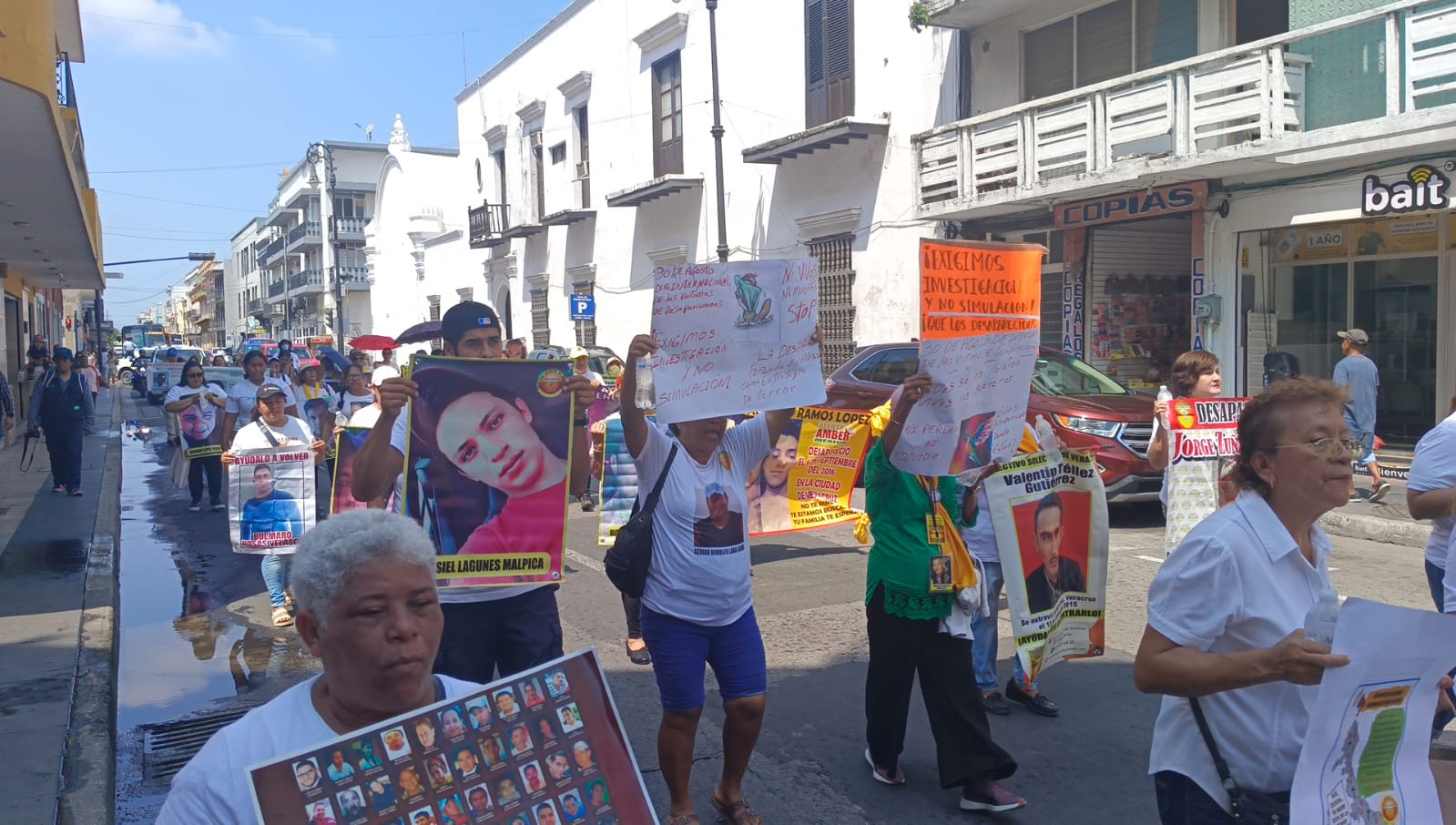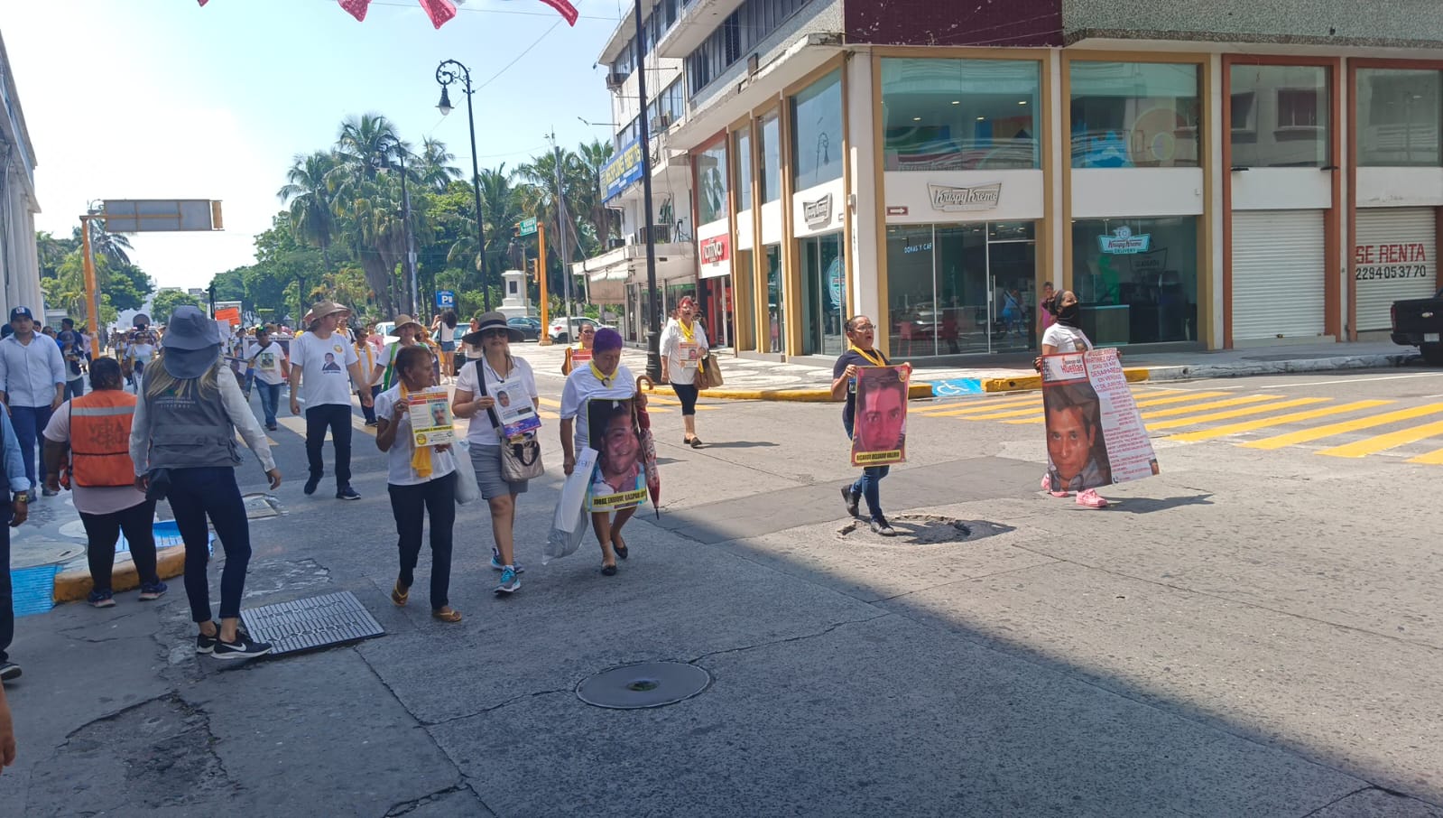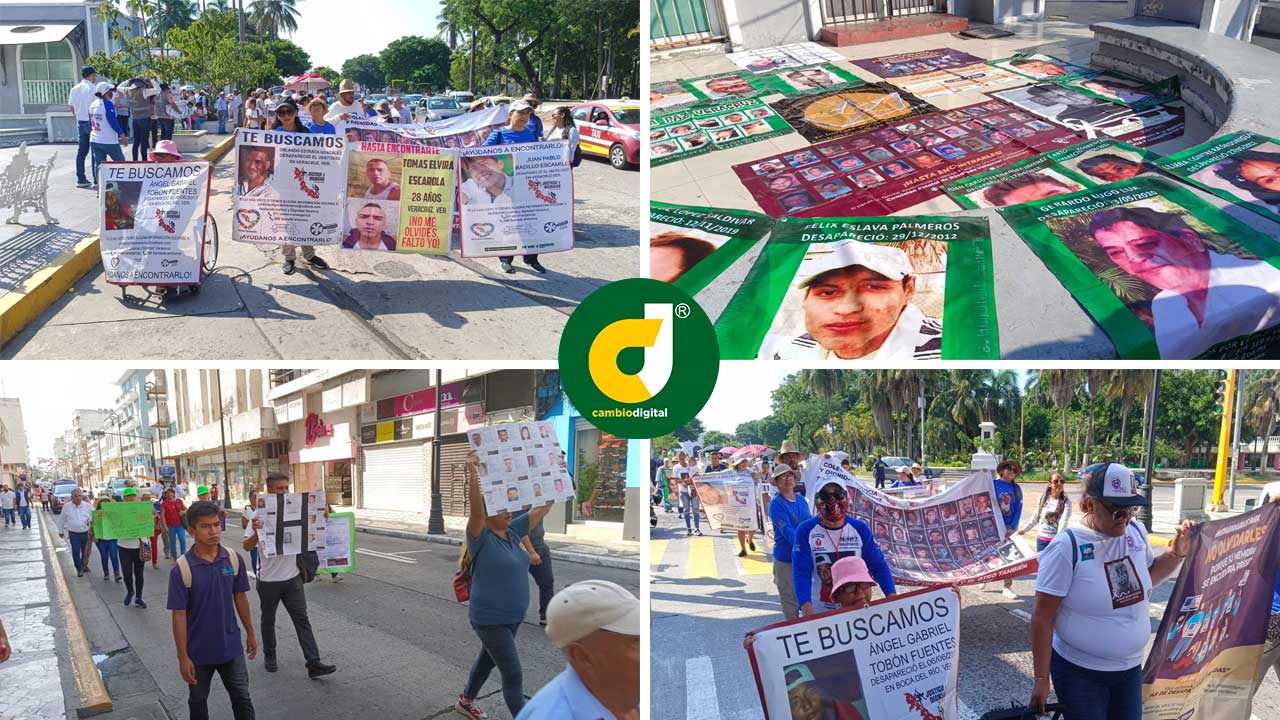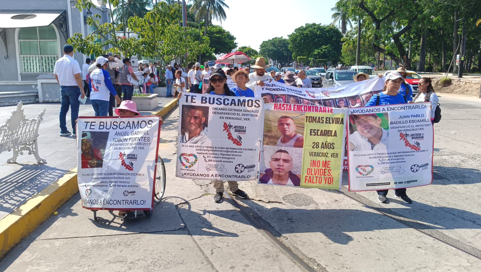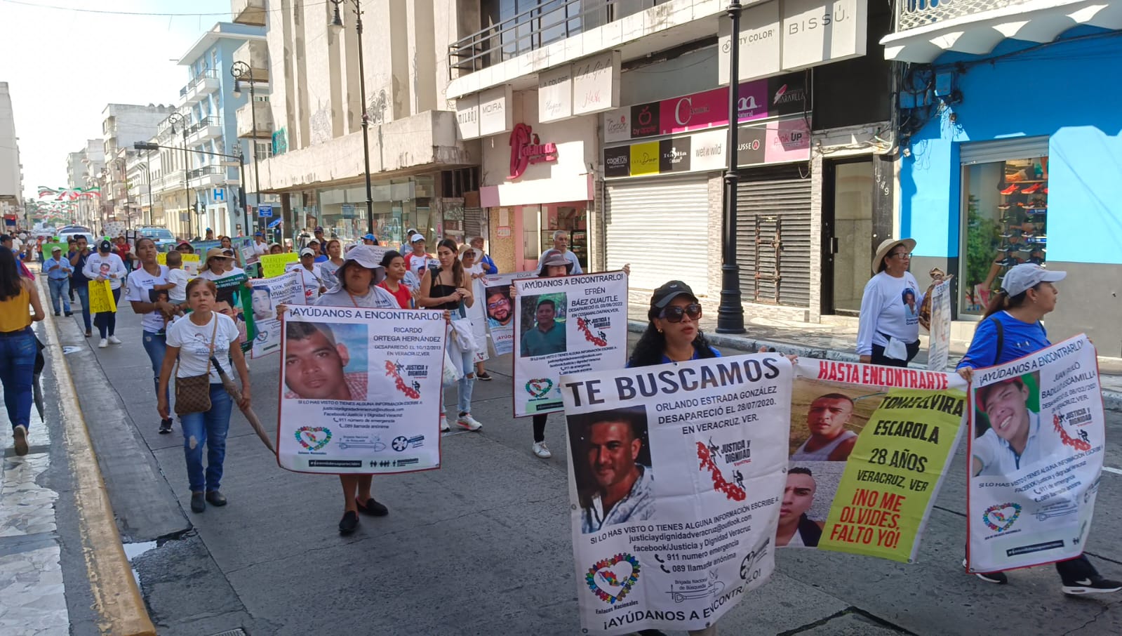 Veracruz, Ver.- Integrantes de Colectivos de Búsqueda de Personas Desaparecidas marcharon por calles del Centro Histórico de Veracruz en el marco del Día Internacional de las Víctimas de Desapariciones Forzadas.