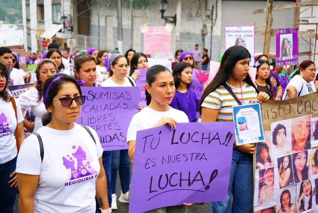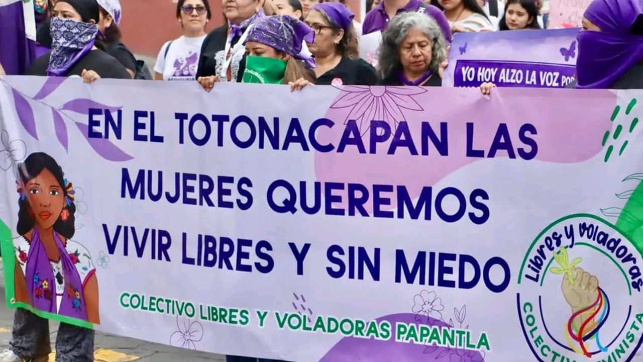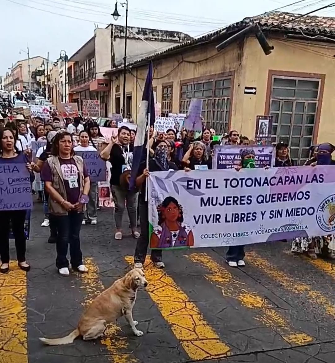 Papantla, Ver.- Con pancartas y motivos en color violeta, colectivos feministas, madres buscadoras y mujeres papantecas tomaron las calles del primer de la ciudad para conmemorar el Día Internacional de la Mujer y alzar la voz por las mujeres desaparecidas en los últimos años y quienes sufren diversos actos de violencia.