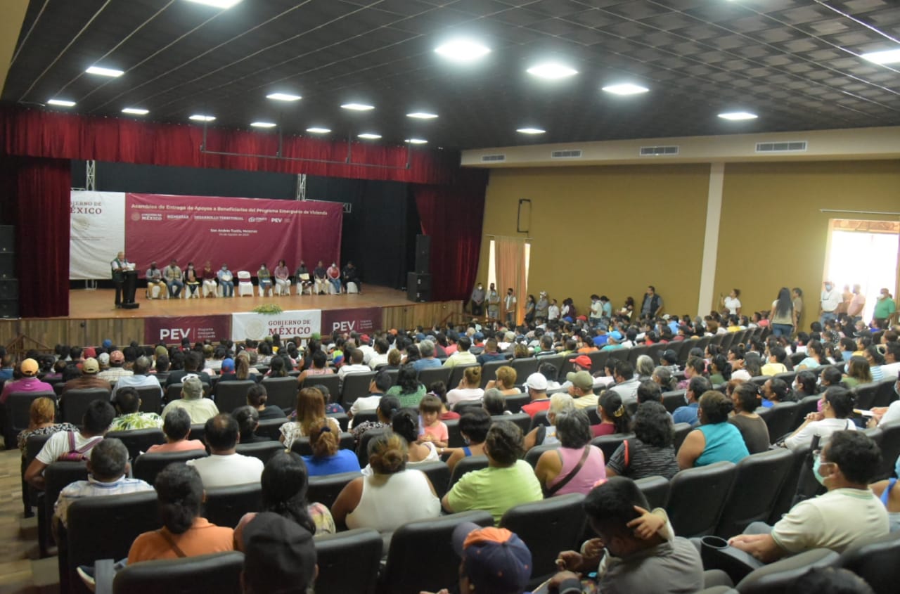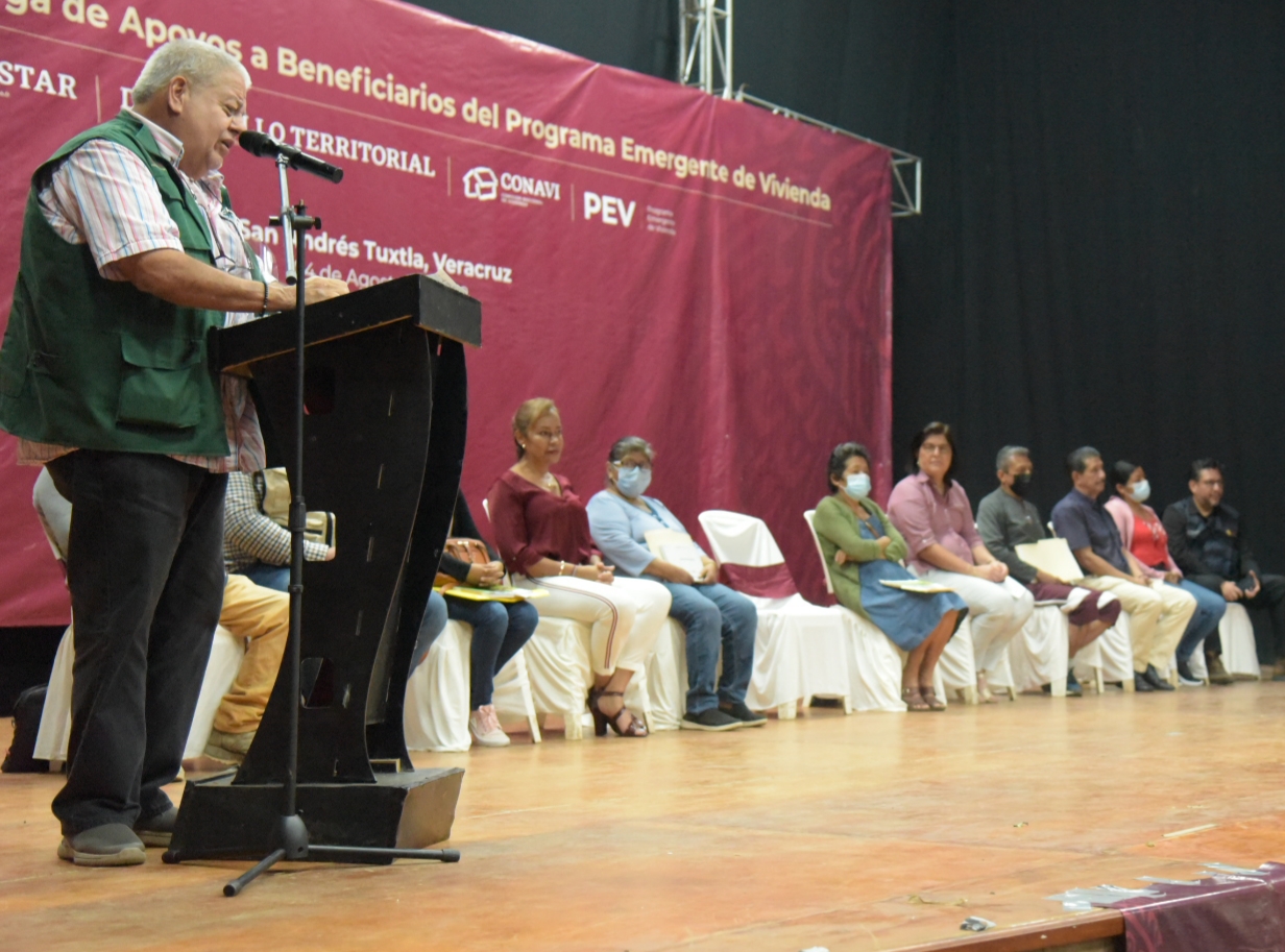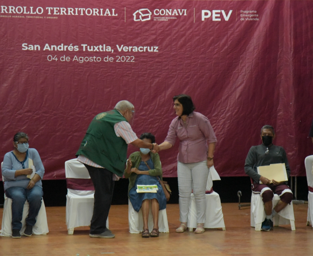 San Andrés Tuxtla, Ver.- Este jueves en el Teatro de la Ciudad, de San Andrés Tuxtla, tuvo lugar la entrega de apoyos del Programa Emergente de Vivienda, con el cual se beneficiaron a familias sanandrescanas y del cual dio fe la presidenta municipal de San Andrés Tuxtla, la doctora María Elena Solana Calzada.