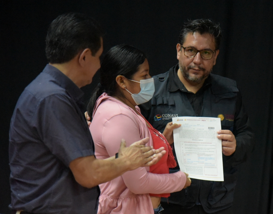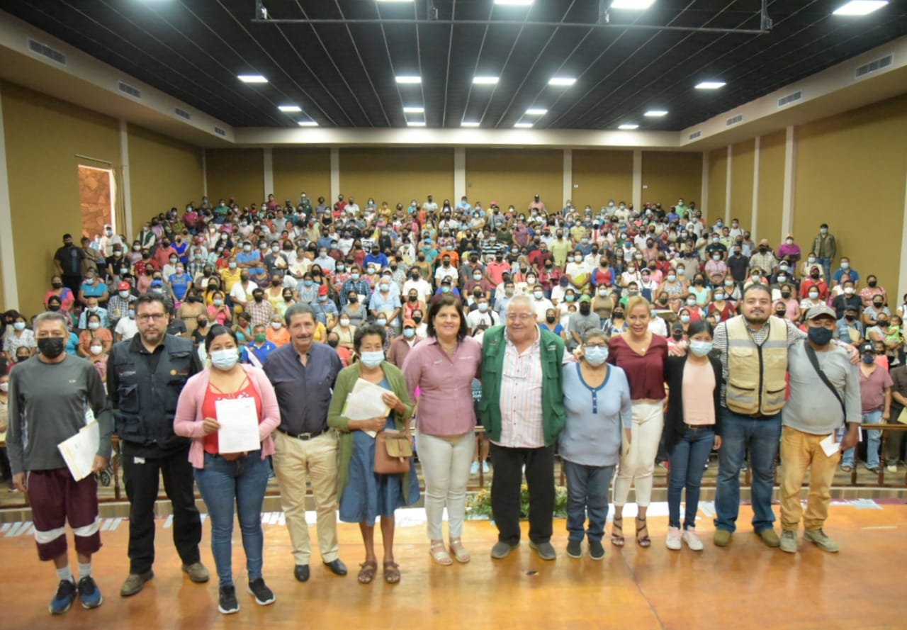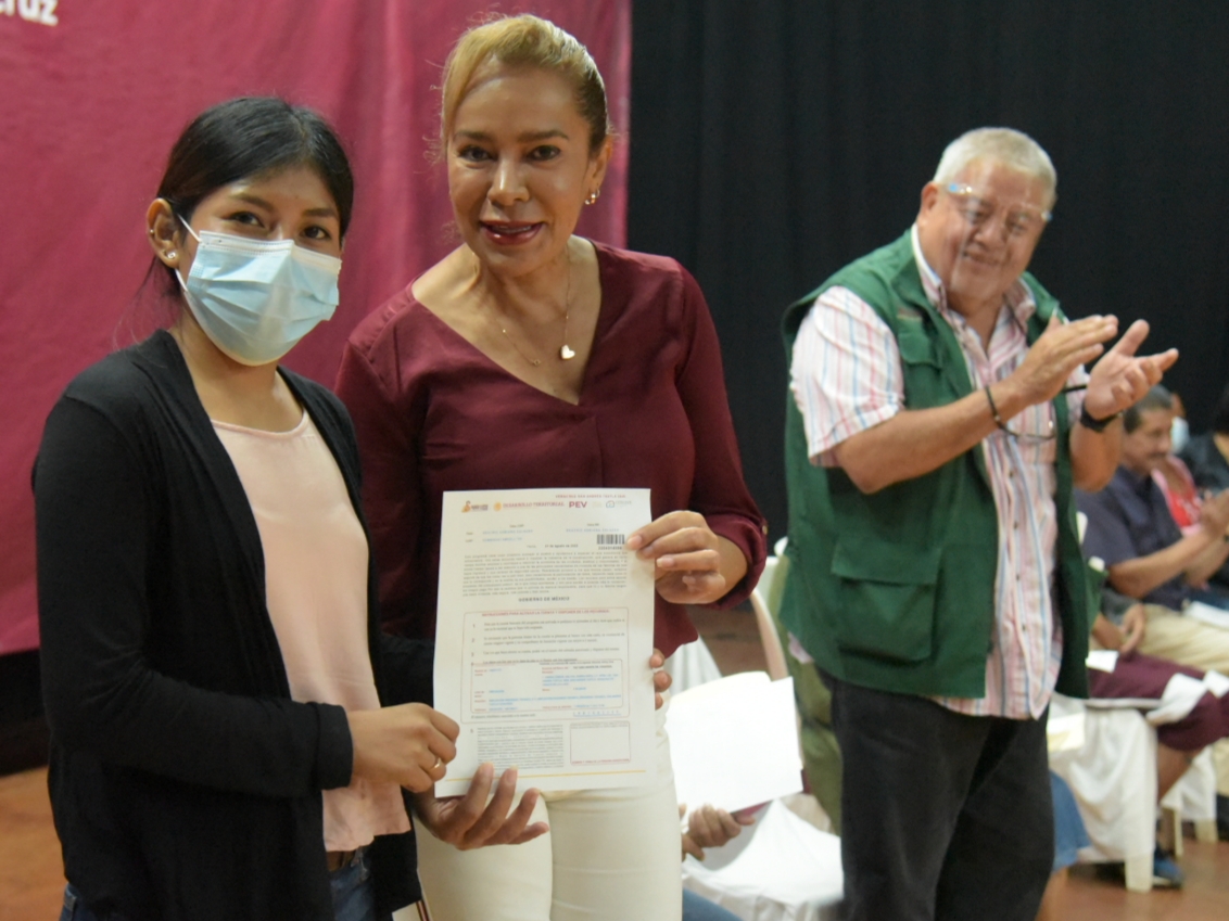 San Andrés Tuxtla, Ver.- Este jueves en el Teatro de la Ciudad, de San Andrés Tuxtla, tuvo lugar la entrega de apoyos del Programa Emergente de Vivienda, con el cual se beneficiaron a familias sanandrescanas y del cual dio fe la presidenta municipal de San Andrés Tuxtla, la doctora María Elena Solana Calzada.