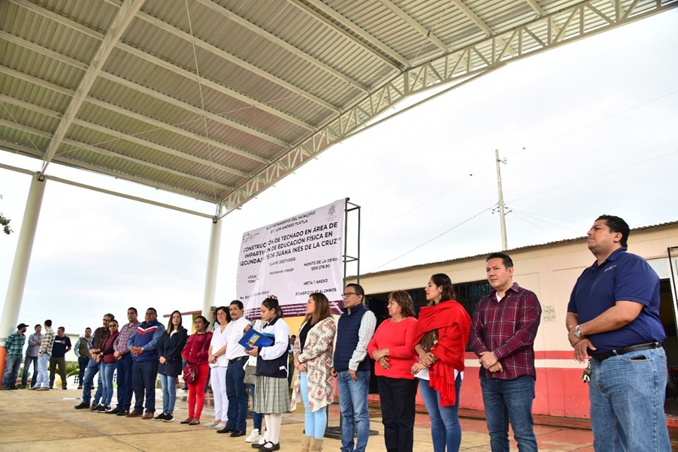 San Andrés Tuxtla, Ver.- “Sin que el sol o la lluvia les impida realizar sus actividades, ahora los jóvenes de esta Telesecundaria podrán disfrutar de un espacio digno y apropiado para su formación educativa, por las nuevas generaciones y un San Andrés con mejores instalaciones para los estudiantes, seguiremos trabajando, hoy San Andrés me llena de orgullo y dejamos huella con obras de calidad y de alto impacto”, expresó la Presidenta Municipal de San Andrés Tuxtla, la Dra Maria Elena Solana Calzada – Dra Remedios, ante padres de familia, alumnos y maestros de la Telesecundaria “Sor Juana Inés de la Cruz” de Tonalapan, donde se inauguró el domo en el área de la cancha de usos múltiples.