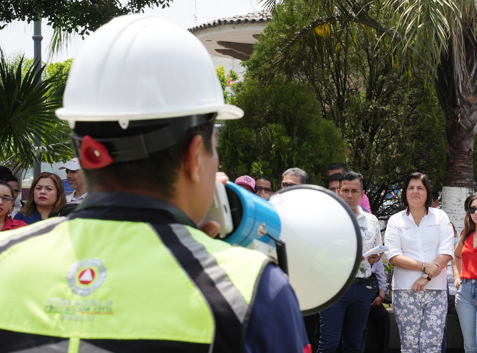 María Elena Solana participa con empleados municipales en simulacro de evacuación de alerta sísmica