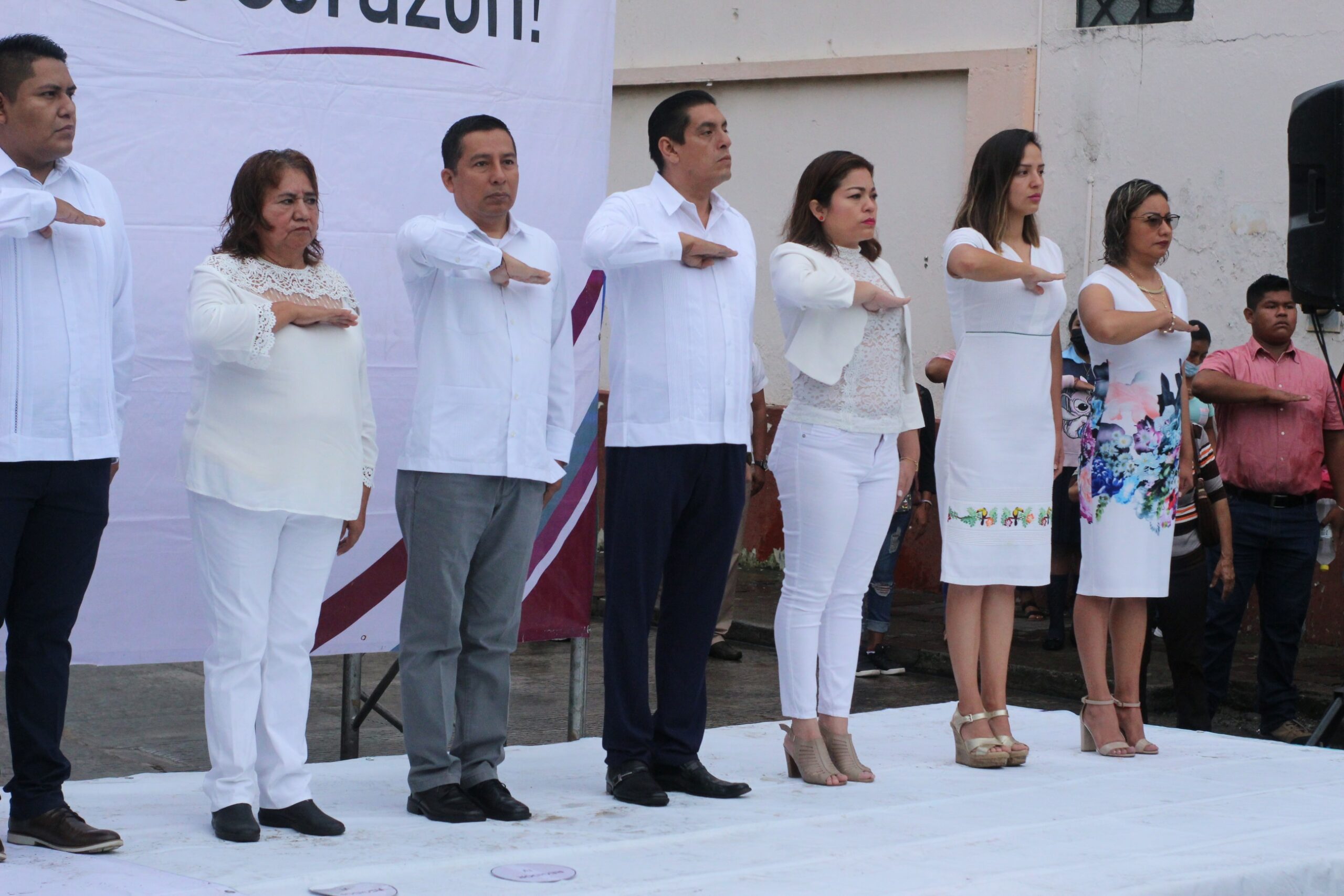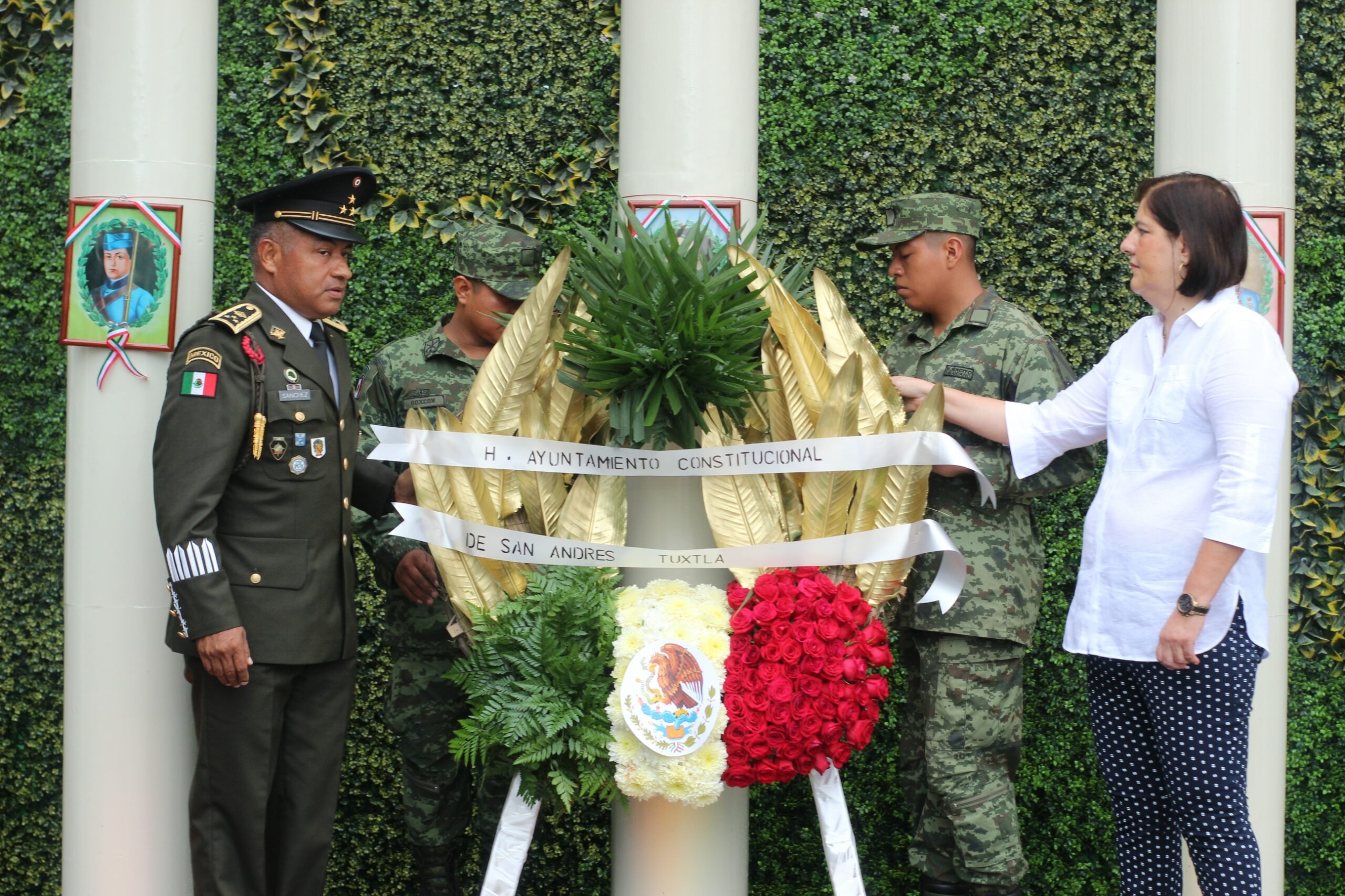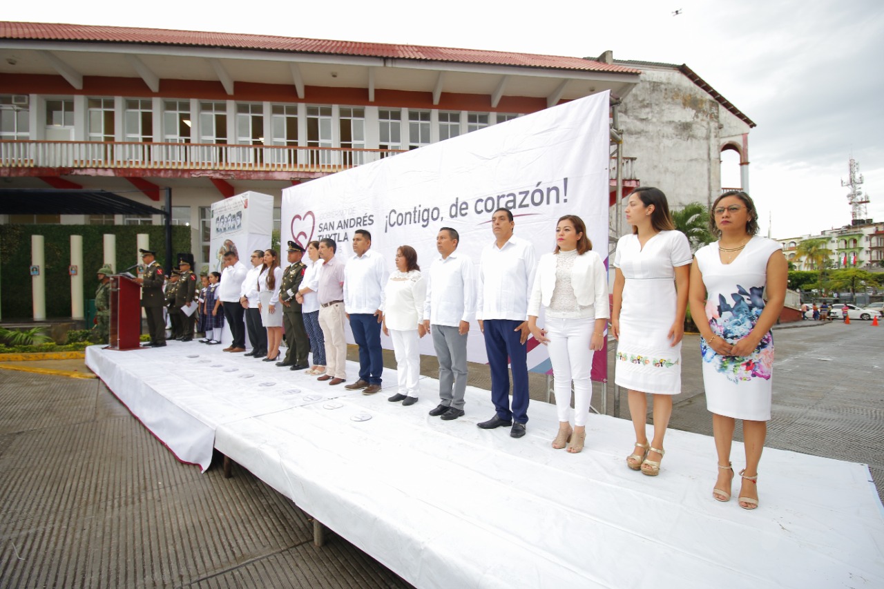 Autoridades civiles y militares se dieron cita en punto de las 8 de la mañana, en una ceremonia coordinada por el Coronel de Infantería Diplomado de Estado Mayor, Luis Antonio Sánchez Mendoza, Comandante del 1er. Batallón de Infantería de San Andrés Tuxtla, contando con la asistencia de la alcaldesa María Elena Solana Calzada, el Síndico Único, Roberto Enríquez Ruíz, y los regidores María Elida Pino Villaseca, Iván de Jesús Bautista Tom, Mayra Patricia Xolo Hernández, Edgar Leoncio Antemate Caixba, Abelardo Ortíz Navarrete, Danae Vázquez Molina, Edgardo Ramírez Sosa, Omar Martínez Aranda, Concepción Carmona Caldela, y Gabriela Díaz del Castillo Domínguez.
