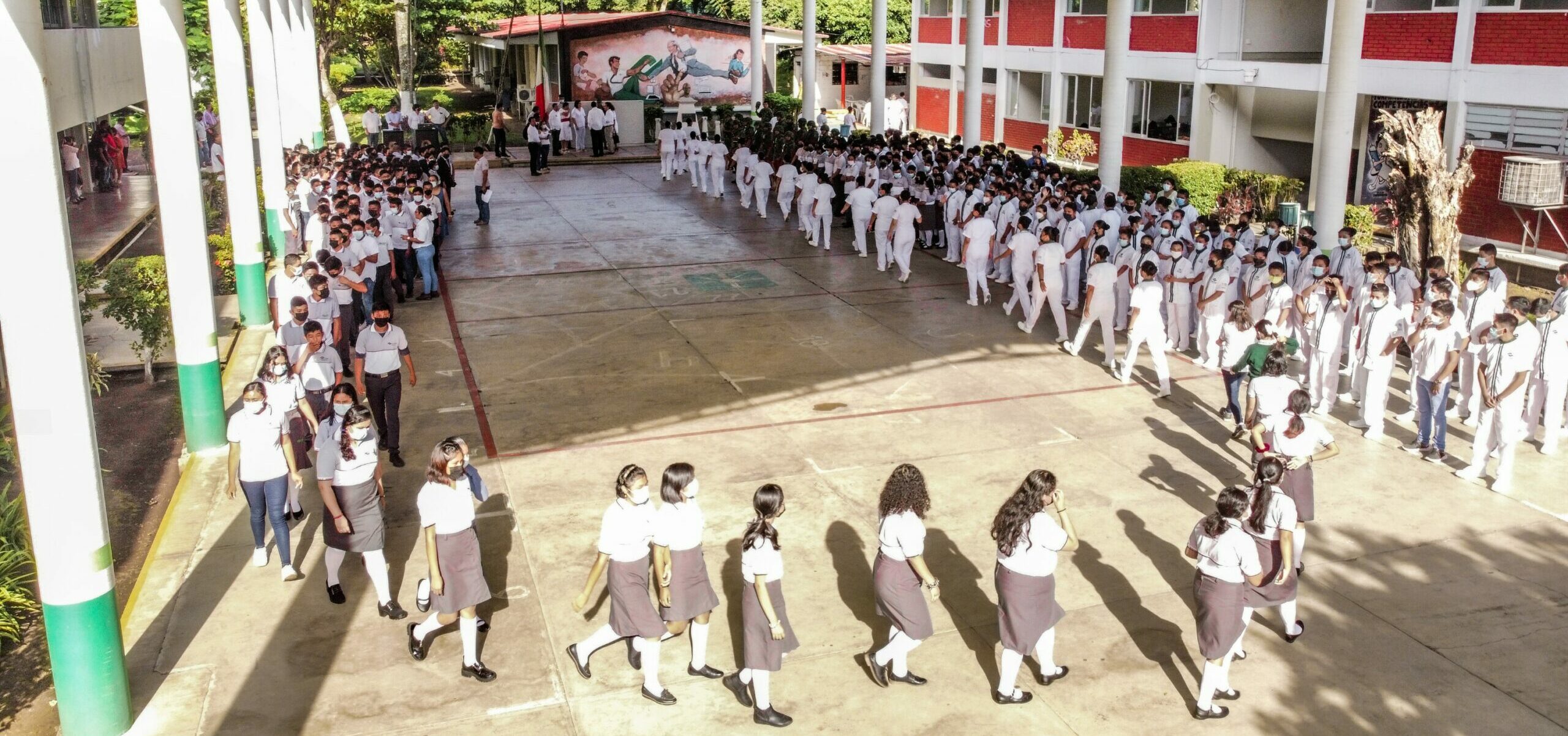 Finalmente, la doctora María Elena Solana Calzada invitó a la población estudiantil a permanecer atentos al calendario cívico del mes patrio, pues parte de los principios y valores cívicos es el respeto a los símbolos patrios.