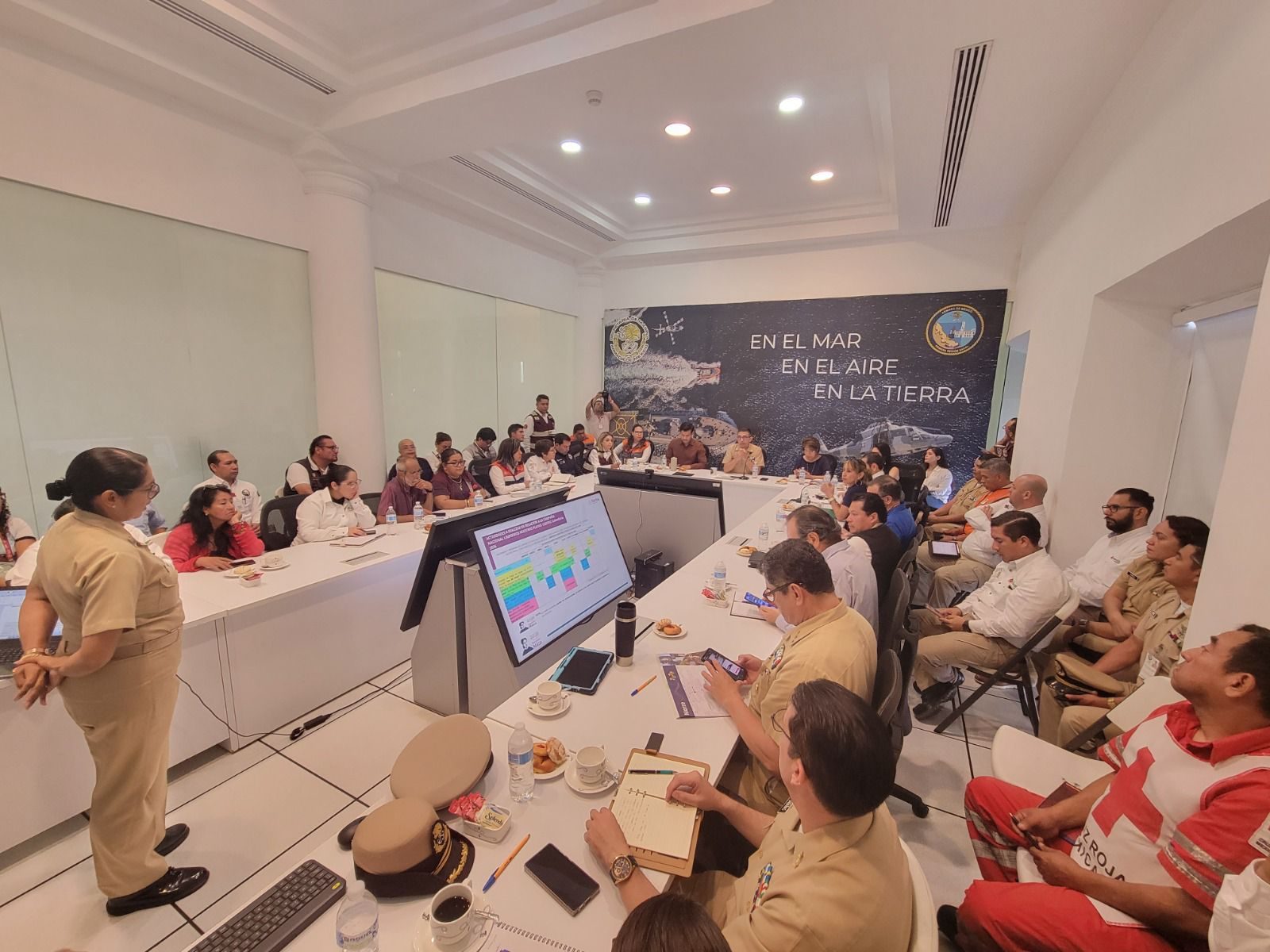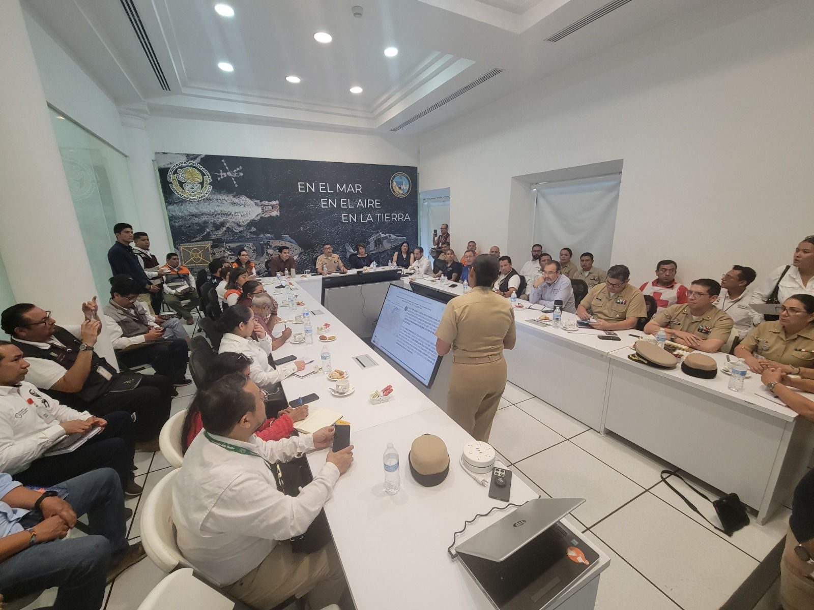 En citada reunión, se presentaron las acciones realizadas hasta el momento, que incluyen recorridos aéreos, marítimos y terrestres en los que han participado la Secretaría de Marina,