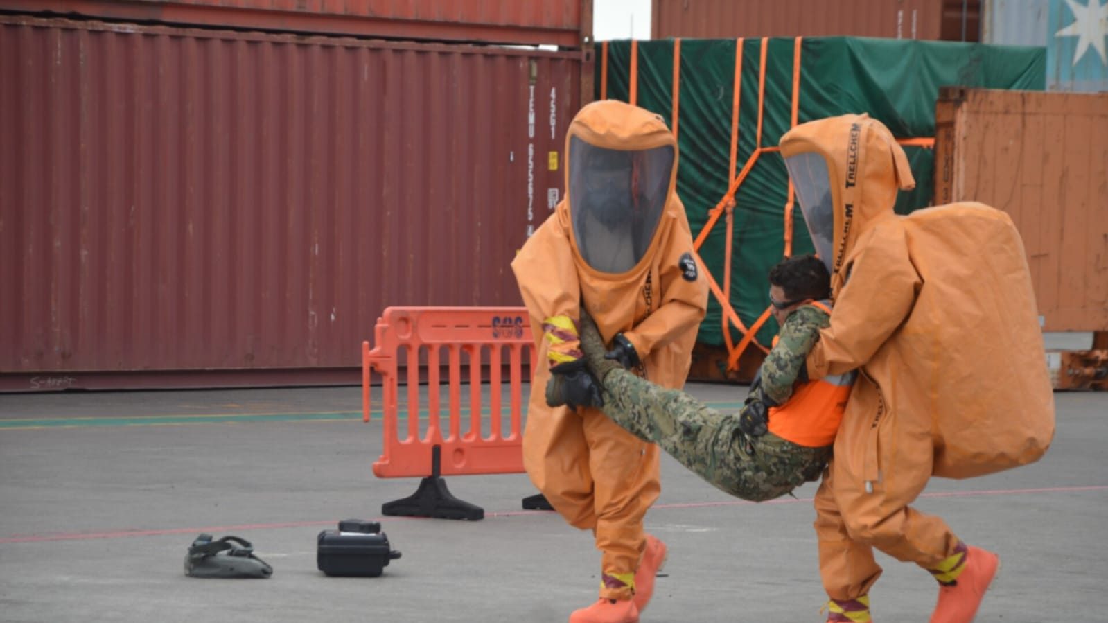 Veracruz, Ver.- La Secretaría de Marina, a través de la Armada de México, informa que ayer en coordinación con la Administración del Sistema Portuario Nacional (ASIPONA) Veracruz, Capitanía de Puerto, Aduana y empresa de servicios portuarios, se llevó a cabo un ejercicio de tercer nivel para la atención de incidentes químicos, biológicos, radiológicos y nucleares (QBRN) en el Recinto Portuario de Veracruz.