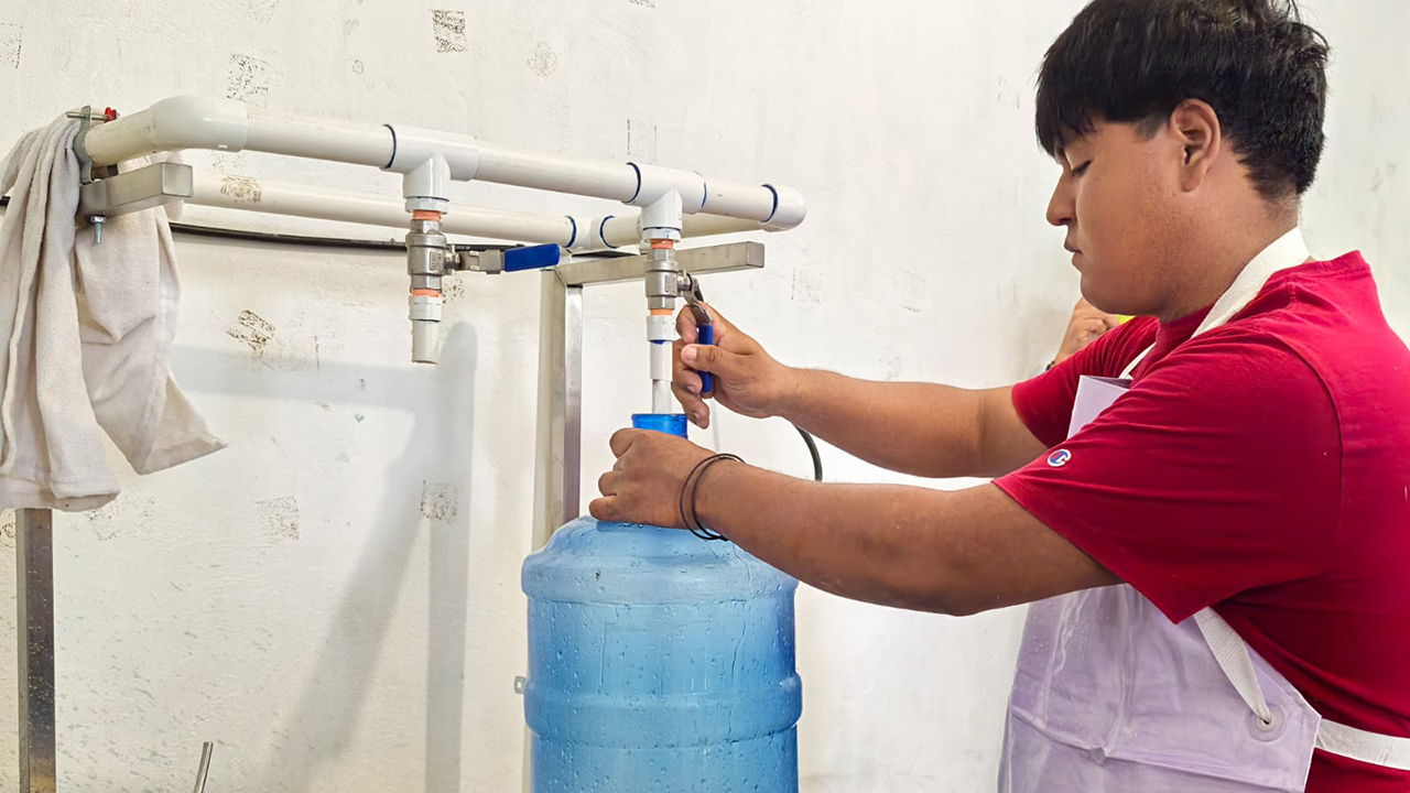 En la planta de agua purificada, contará con un encargado el cual estará a cargo de llenar los garrafones, mismo que dio una demostración del llenado con la higiene correspondiente.