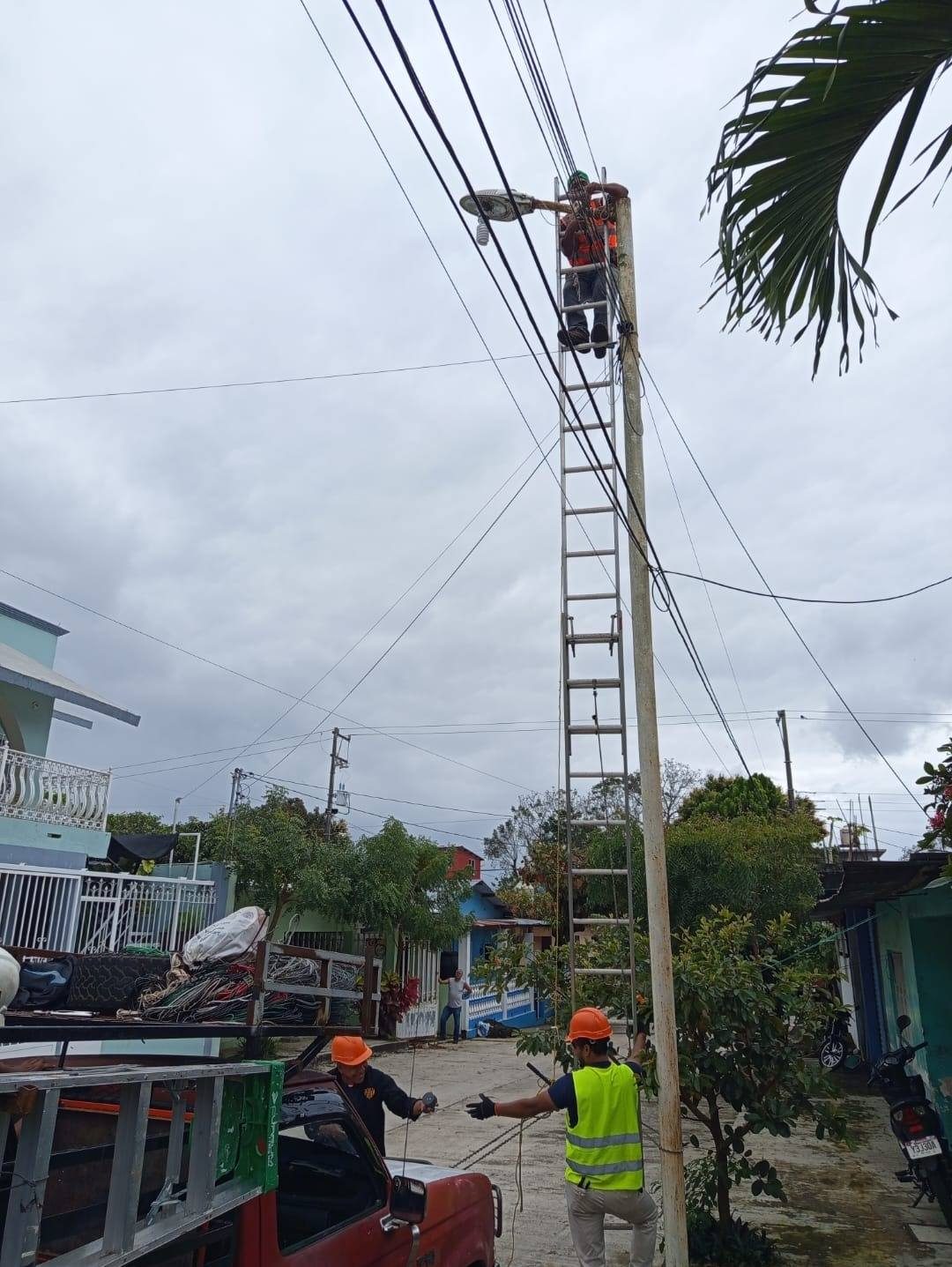 Catemaco, Ver.- Por instrucciones del presidente municipal de Catemaco, Manuel Eduardo Toscano , y a través de la Dirección de Alumbrado Público, se atendió oportunamente el reporte y reparación de un poste en la calle De los Maestros, así como la falla de luminarias en la colonia Centro, sobre la calle Zamora.