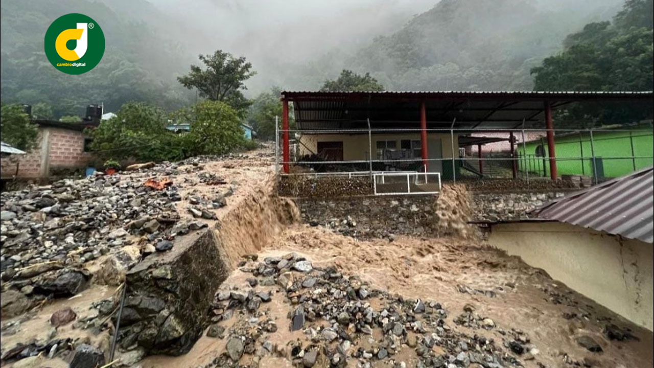En Ilamatlán un puente cayó y ríos de piedra y lodo de las partes altas y serranas, cubrieron viviendas, parque y escuelas.