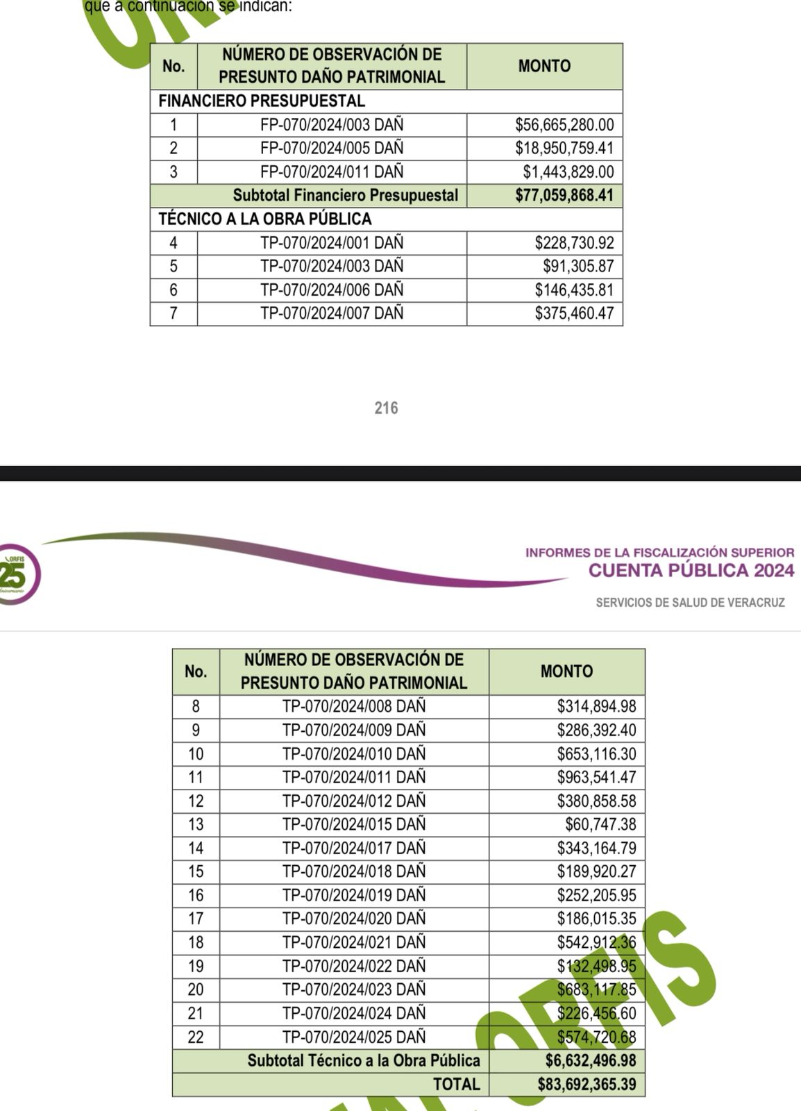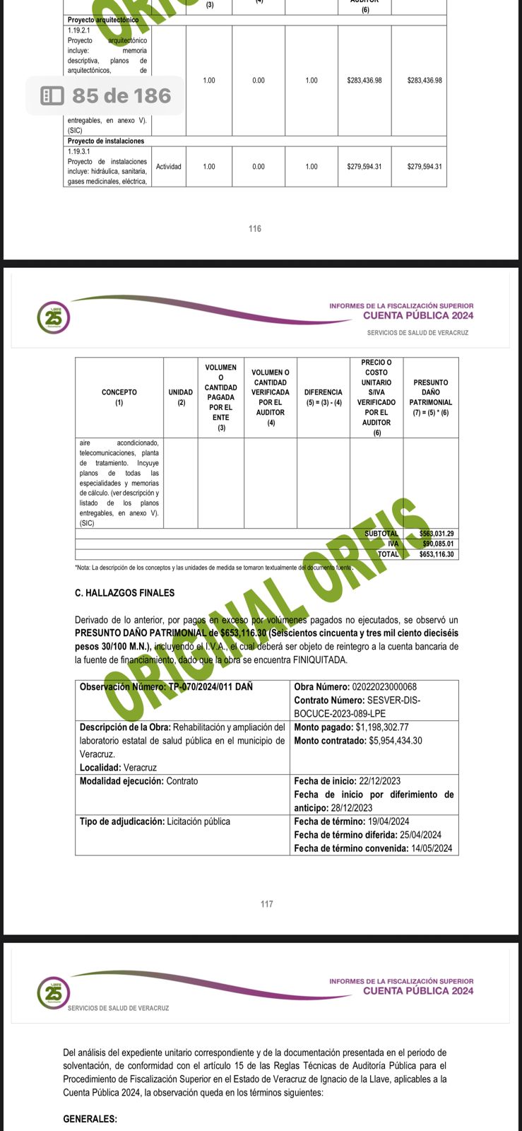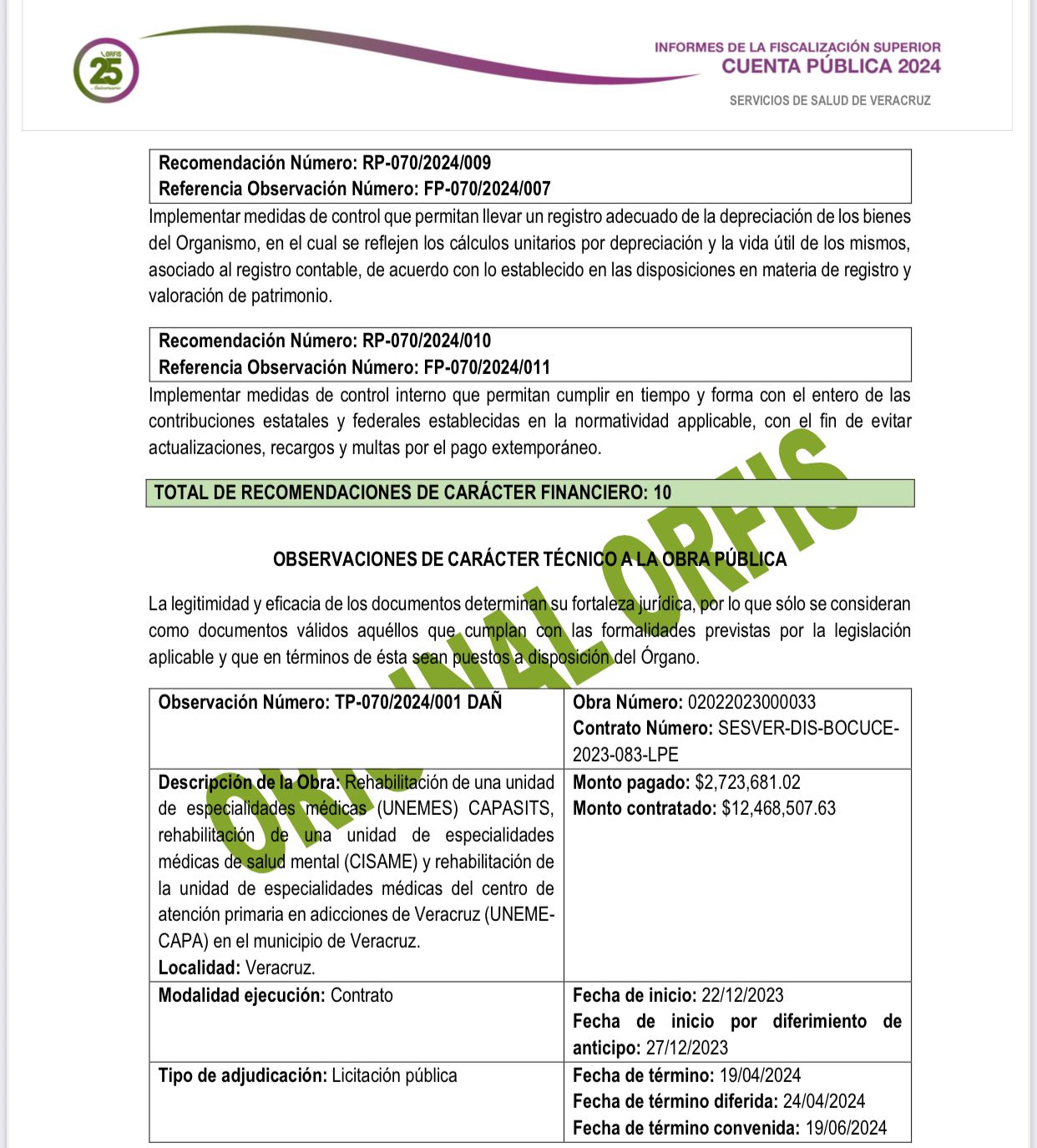 Xalapa, Ver.- Los Servicios de Salud de Veracruz (Sesver) han sido objeto de observaciones significativas del Órgano de Fiscalización Superior (Orfis) en relación con obras públicas, destacándose un presunto daño patrimonial de 83.6 millones de pesos.