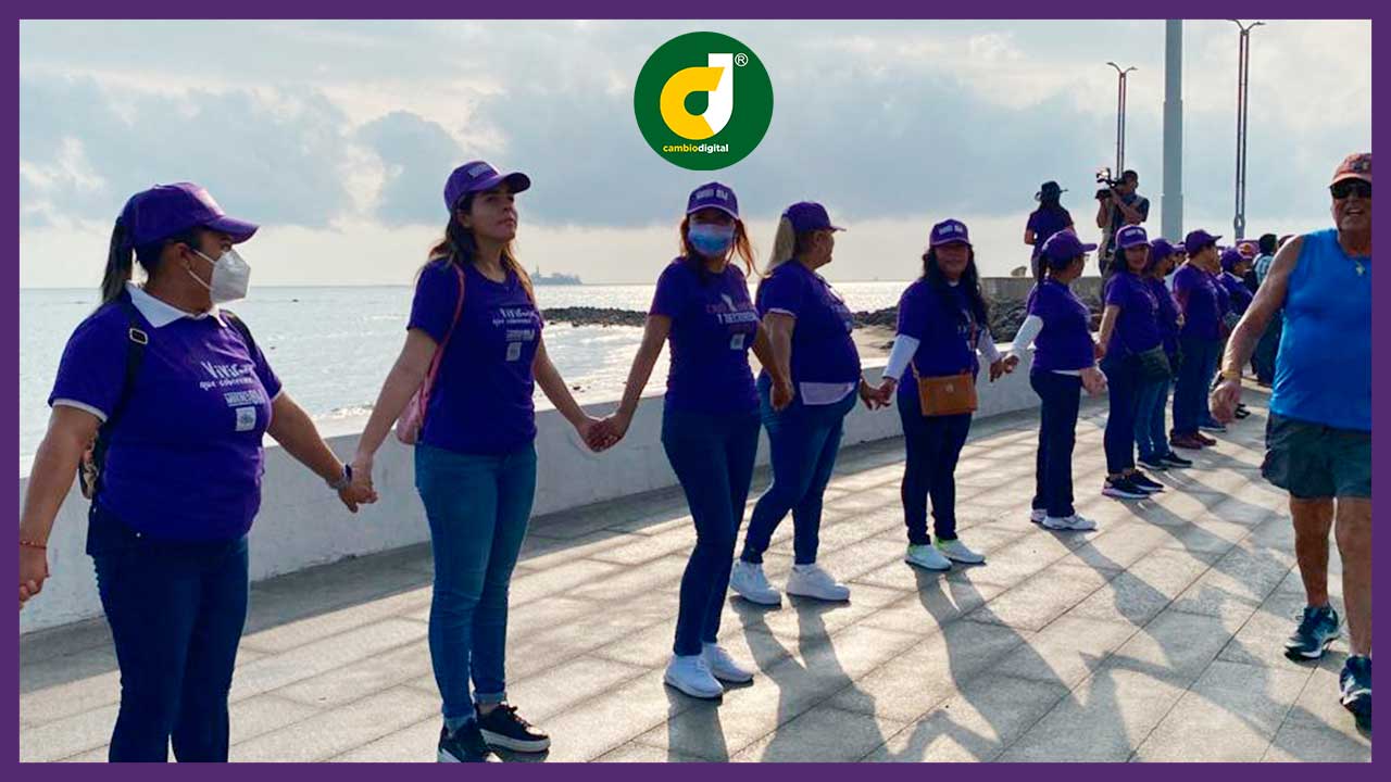 Veracruz, Ver.- Esta mañana más de mil mujeres de diversa edades formaron una cadena humana sobre el bulevar Manuel Ávila Camacho de Veracruz.