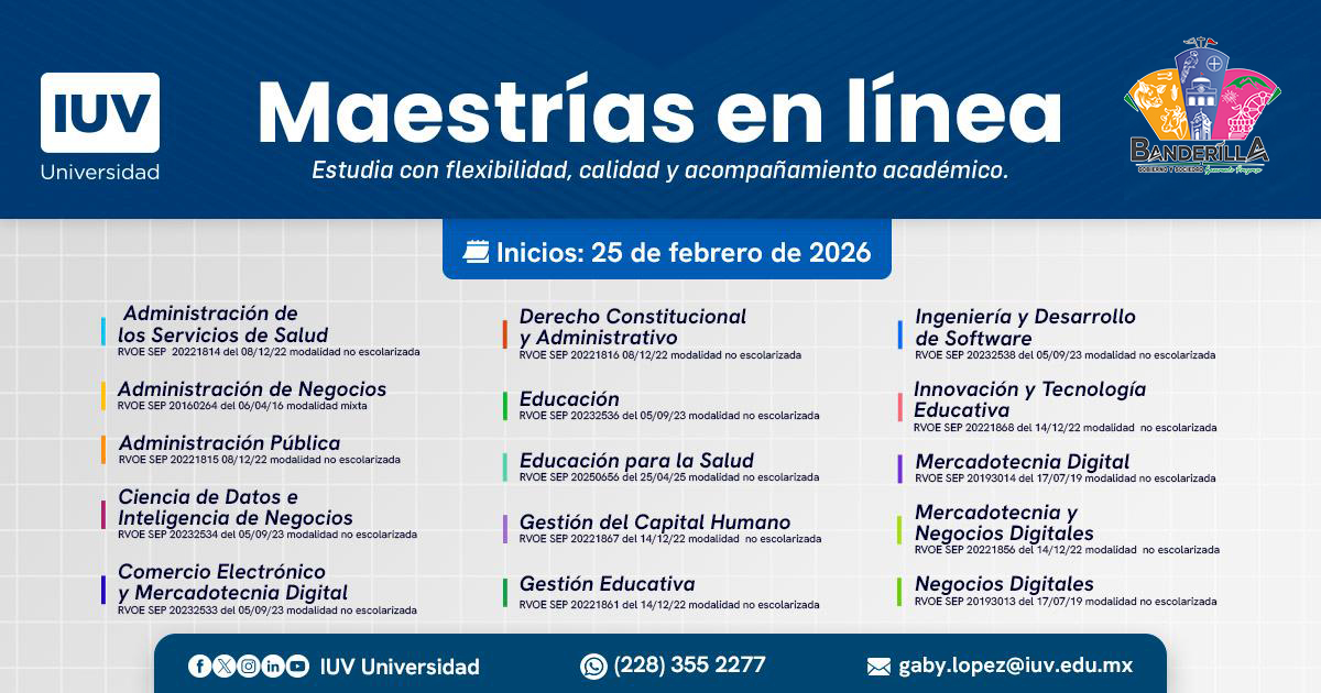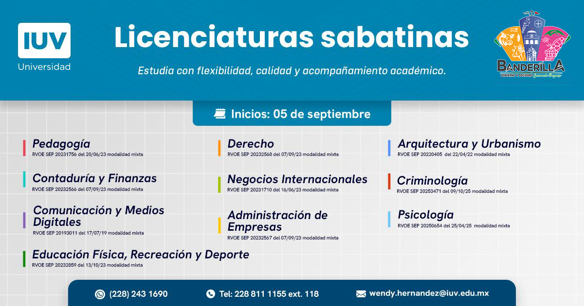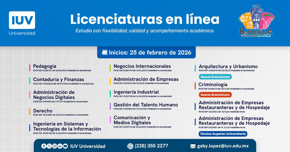 Banderilla, Ver.- El H. Ayuntamiento de Banderilla que preside José Antonio Sangabriel Fernández en coordinación con@iuvuniversidad, pone a disposición de las y los estudiantes banderillenses un convenio de colaboración educativa para acceder a: