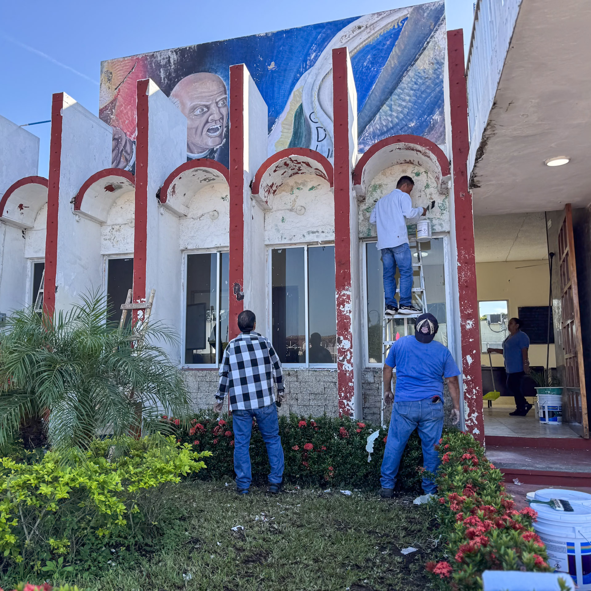 Saltabarranca, Ver.- Por instrucciones del alcalde de Saltabarranca, Elvis Laureani Román, el equipo de Servicios Generales sigue adelante con las labores de mejora y pintura en las instalaciones del ayuntamiento.