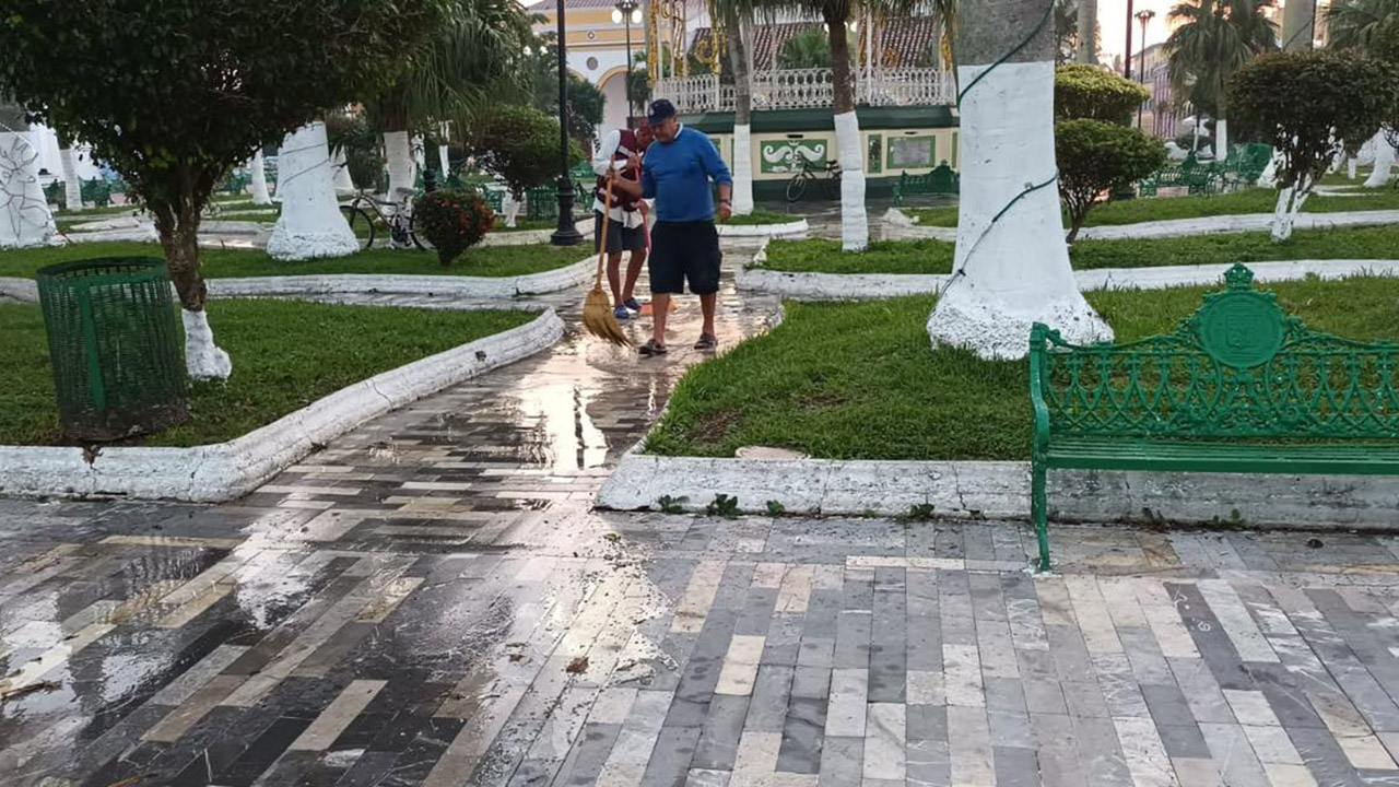 Mejoran imagen del Parque Zaragoza en Tlacotalpan