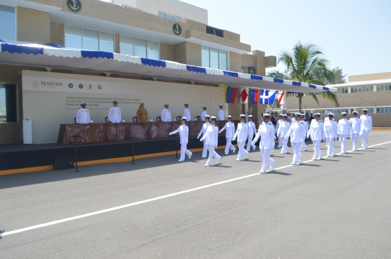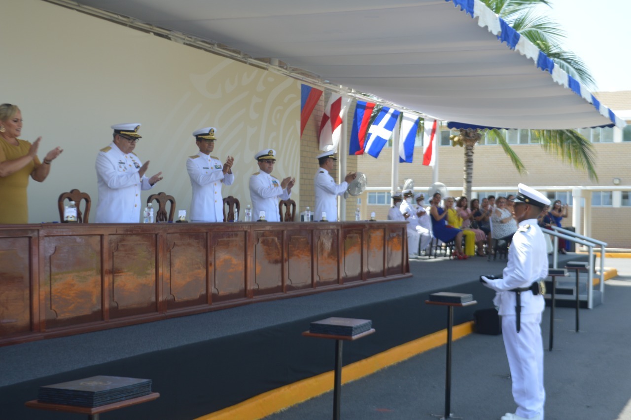 Al hacer uso de la palabra, en representación del almirante José Rafael Ojeda Durán, secretario de Marina y alto mando de la Armada de México, el jefe de Estado Mayor de la Tercera Región Naval, reconoció que “su constancia, entrega, disciplina y sobre todo su enorme vocación de servicio, han sido, sin duda, los factores determinantes que les han permitido culminar hoy con éxito su formación como técnicos profesionales en Intendencia, Electrónica e Informática Naval”.
