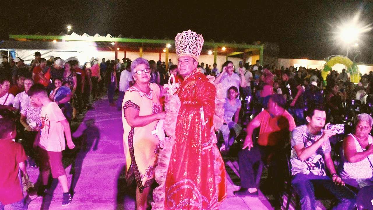El evento de coronación estuvo amenizado por el show de picardía jarocha a cargo de “La Tía Justa”, para posteriormente dar paso al baile de coronación con el grupo Bahía y Wicho Celis y sus teclados.