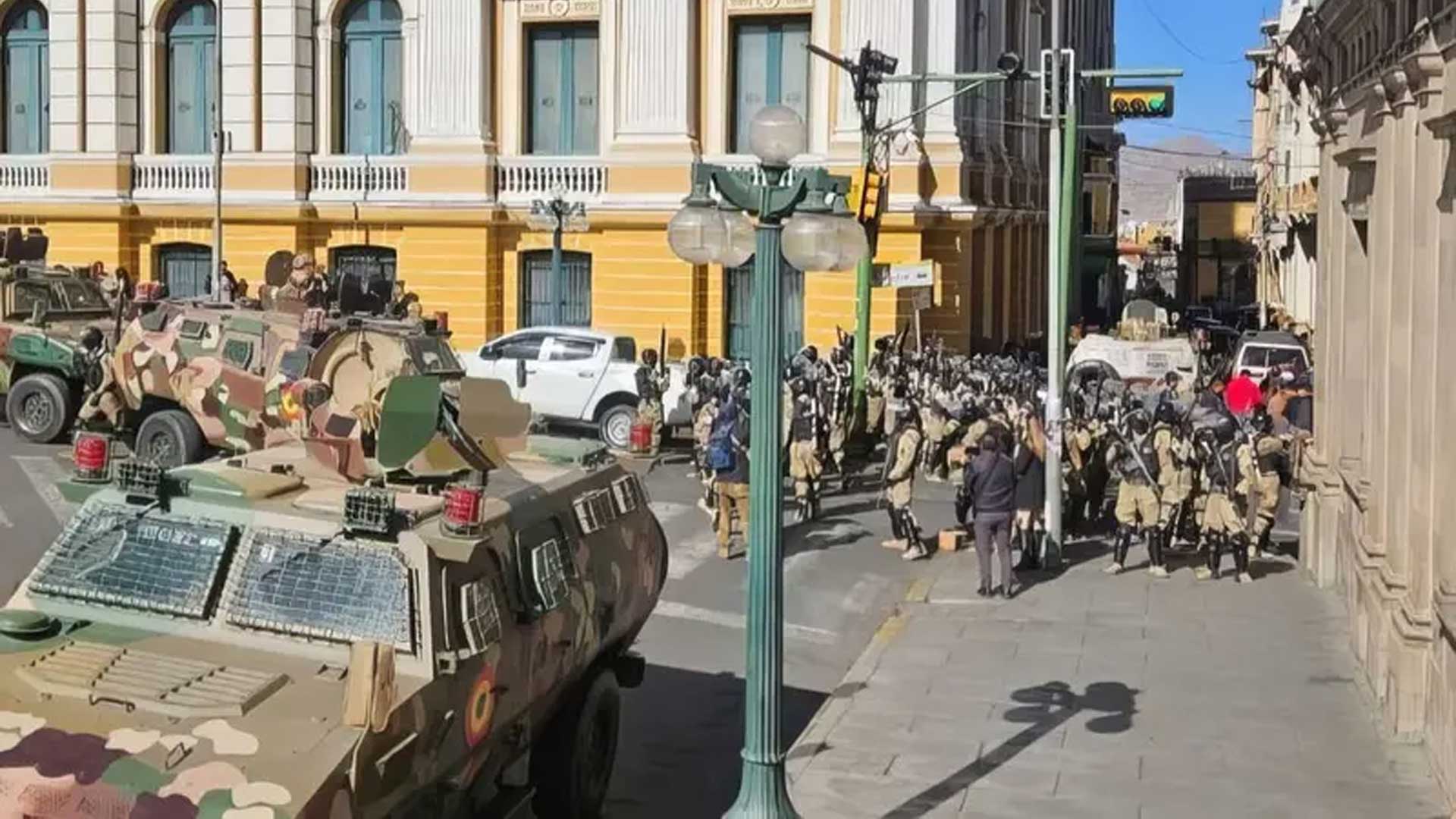 Bolivia - Fuerzas Armadas de Bolivia irrumpieron la tarde de este martes el Palacio de Gobierno de Bolivia con el fin de realizar un golpe de Estado contra el presidente Luis Arce. El expresidente de Bolivia, Evo Morales, y el actual mandatario, Luis Arce, denunciaron la presencia de vehículos blindados y tropas militares en la Plaza Murillo de La Paz durante la tarde del miércoles.