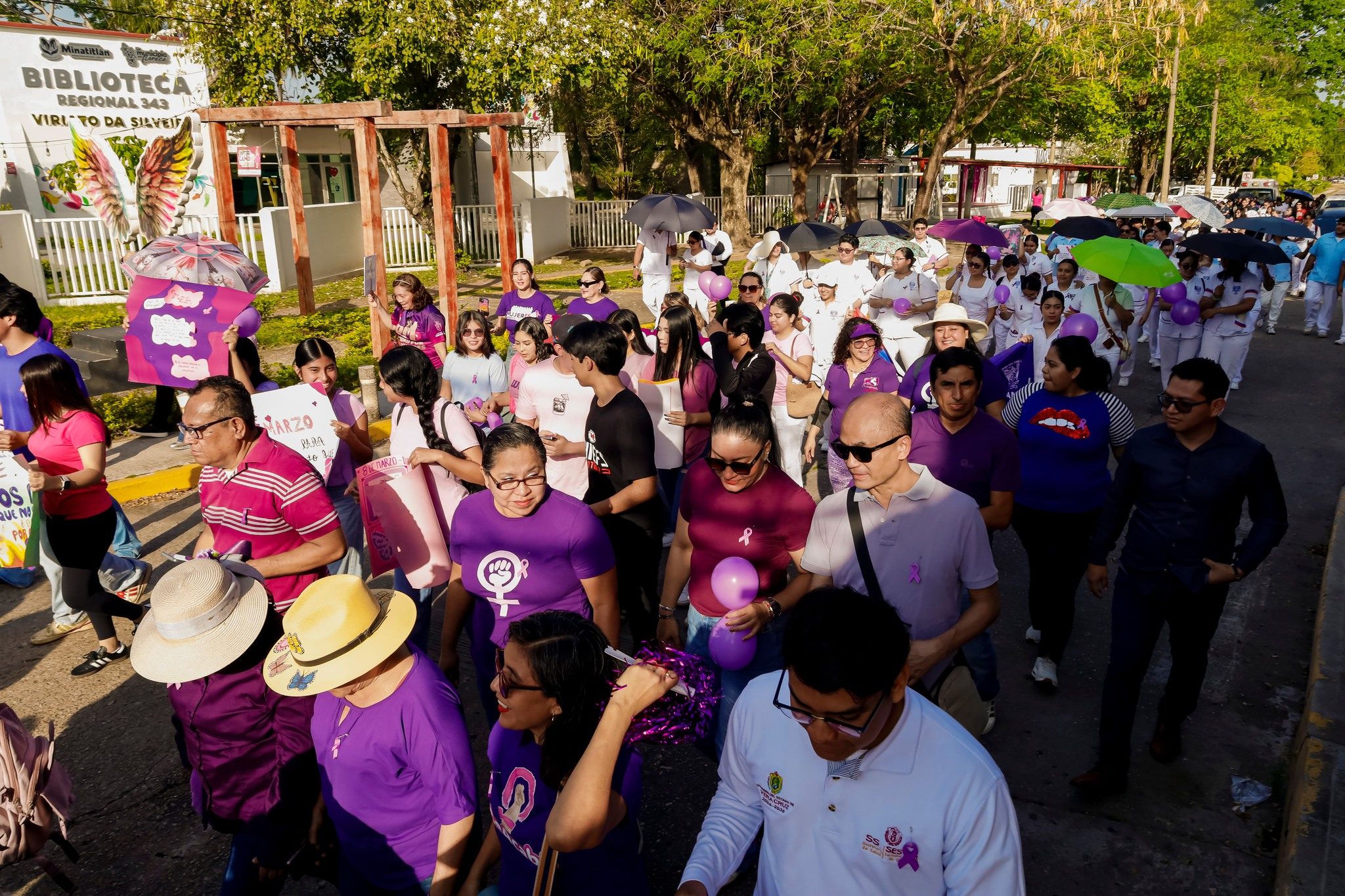 Minatitlán, Ver.- En el marco de la conmemoración del Día Internacional de la Mujer, el Gobierno Municipal que preside el maestro Guillermo Reyes Espronceda llevó a cabo una caminata conmemorativa que partió en las inmediaciones de la Casa de la Juventud y culminó en el Parque Reforma.